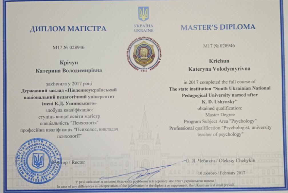 ЮНПУ им. К. Д. Ушинского "магистр психологии"