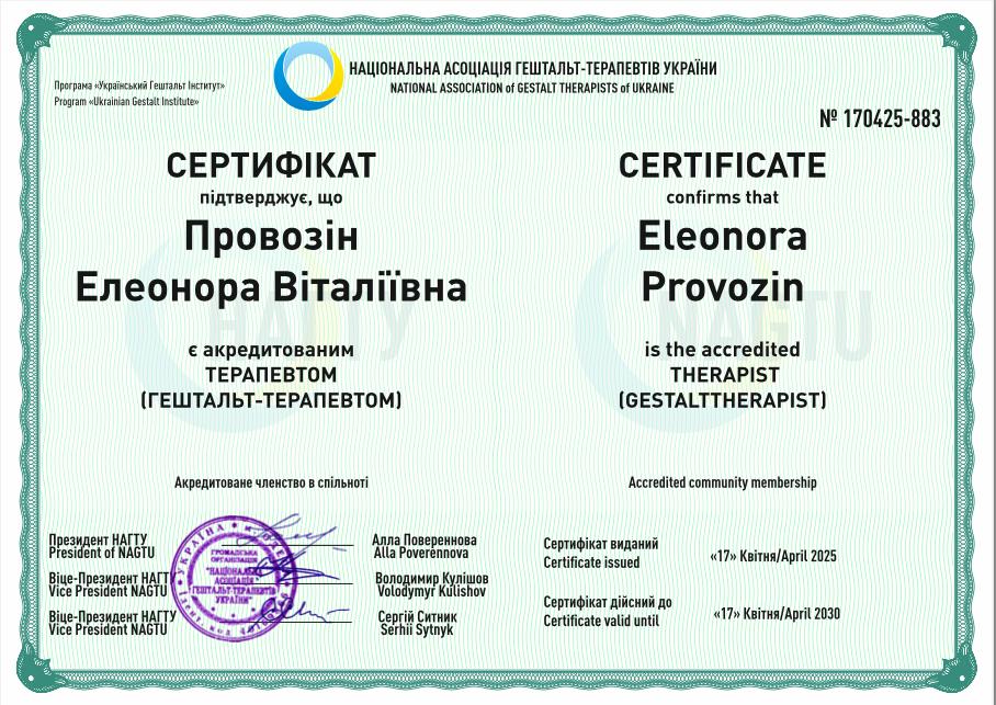 2021-2022 гг – Специализация «Работа с травматическими переживаниями в гештальт-подходе» НАГТУ
