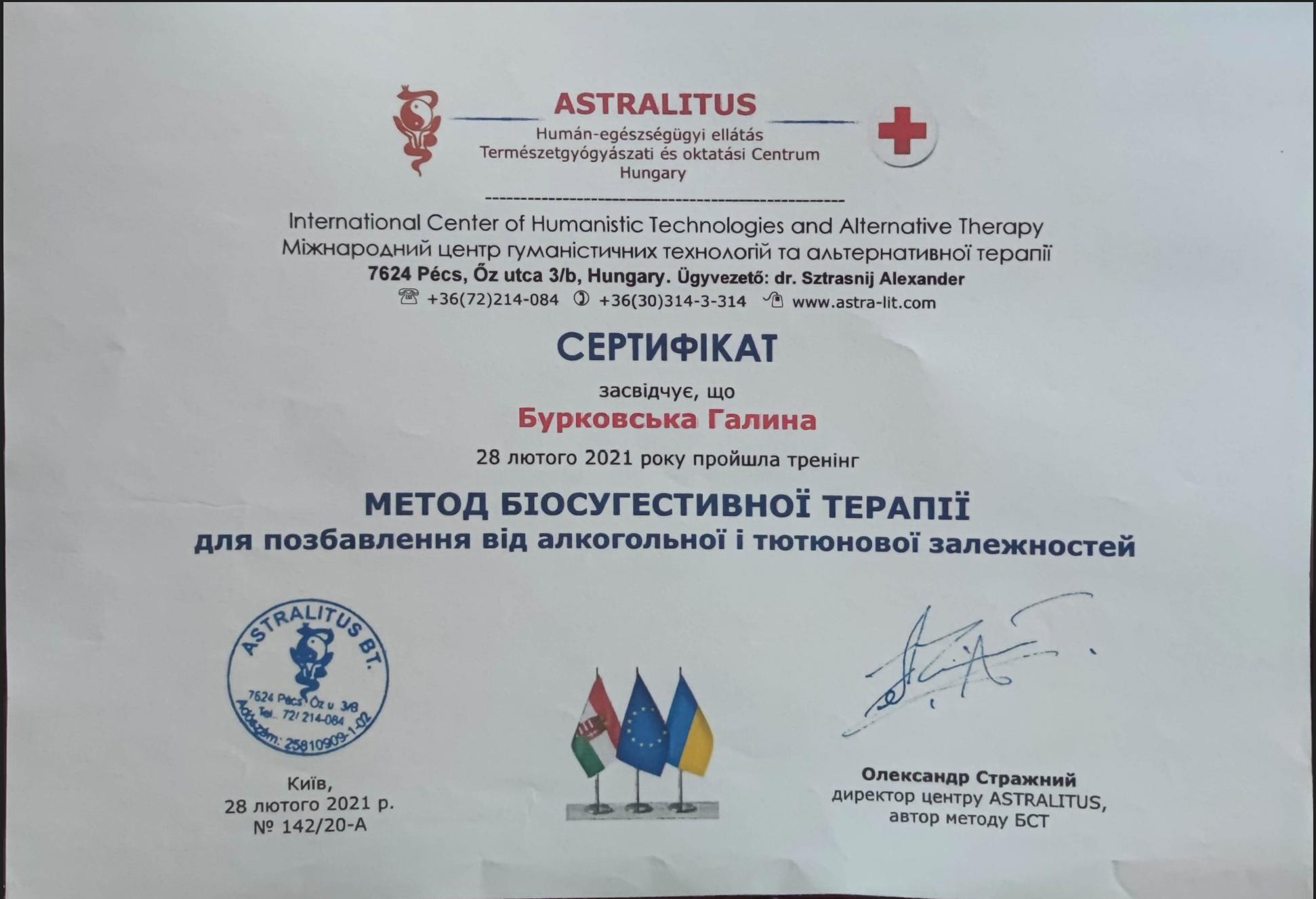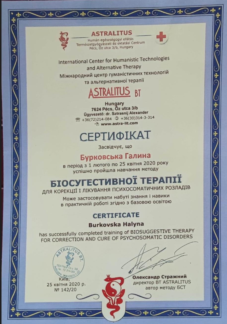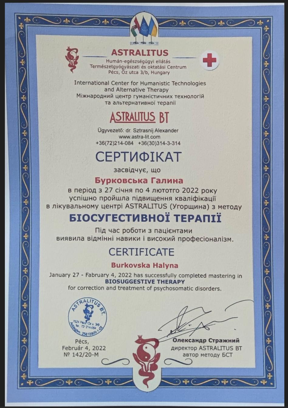 (Венгрия-Украина) 2020 г.: специалист по биосугестивной терапии