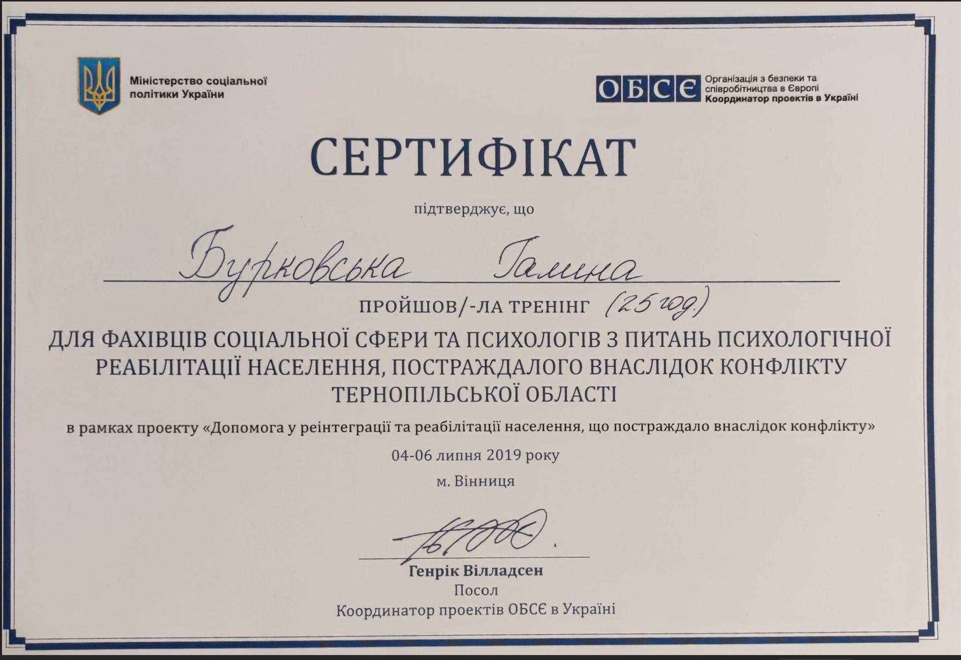 ОБСЕ «Психологическая реабилитация населения, пострадавшего во время конфликта» 2019