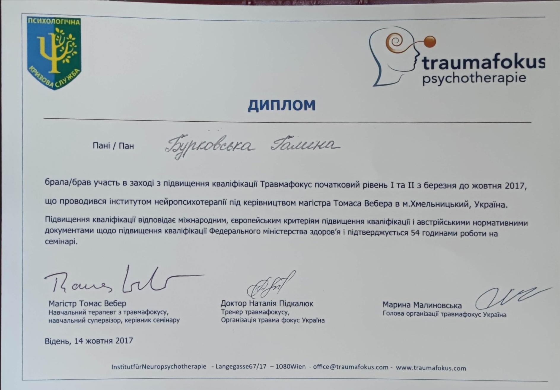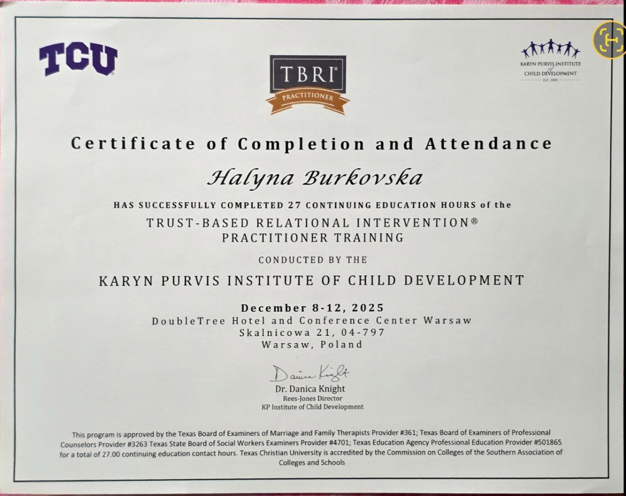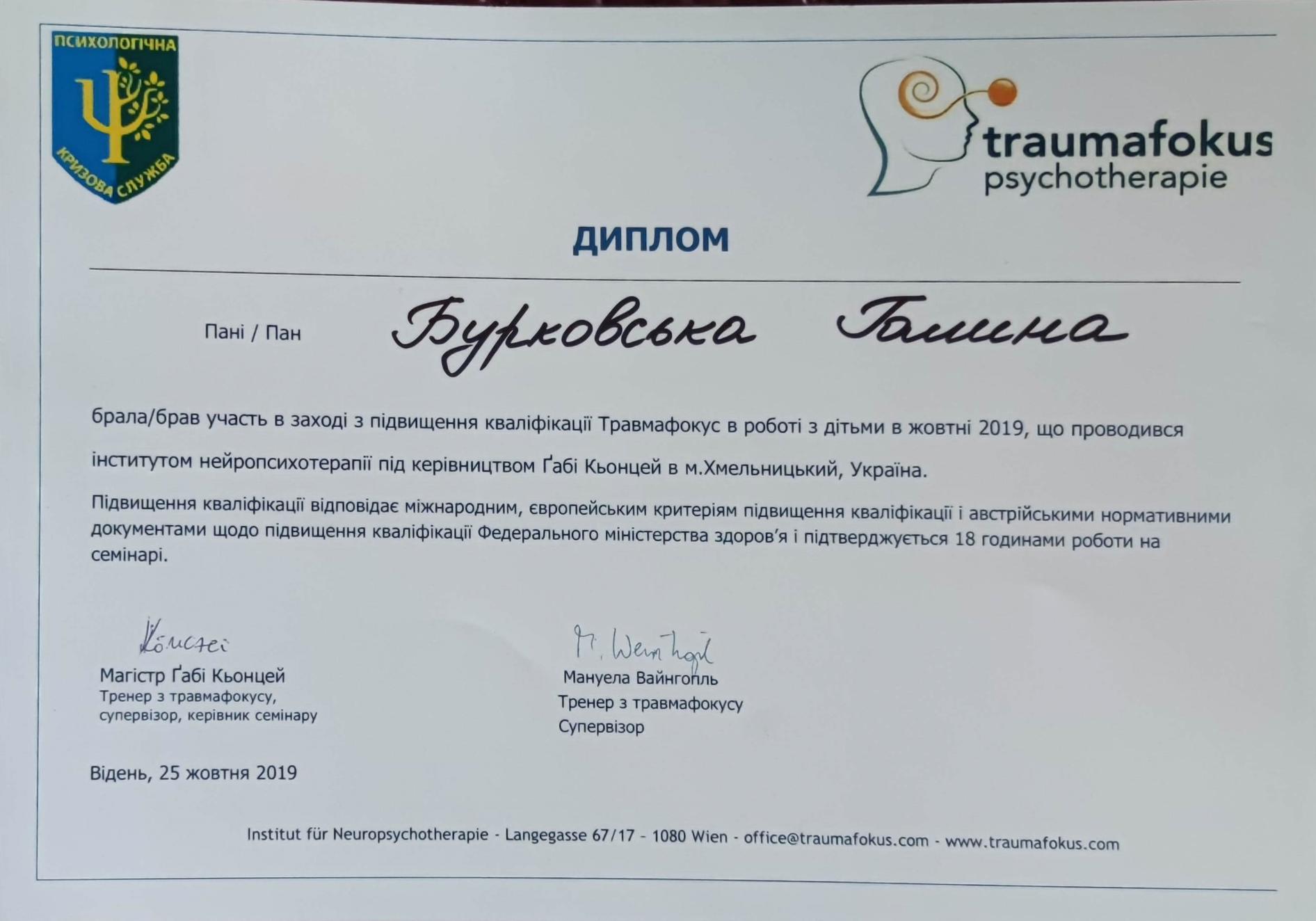 Повышение квалификации: травмафокус в работе с детьми - 18 часов;