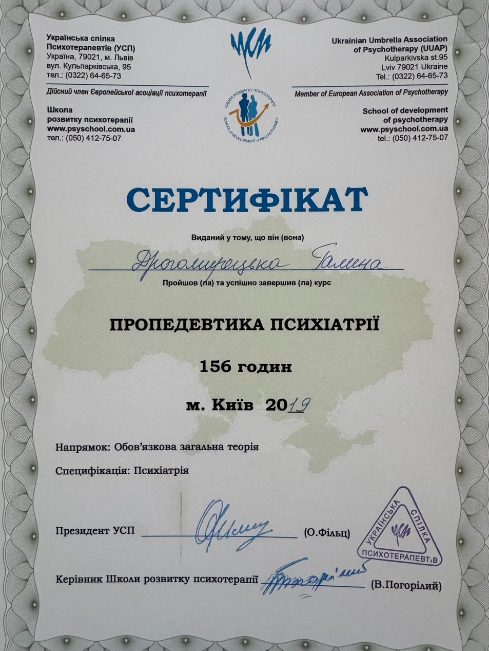 - Первая киевская школа психотерапии, Учебный проект по направлению "Системная семейная психотерапия" (2015-2019)