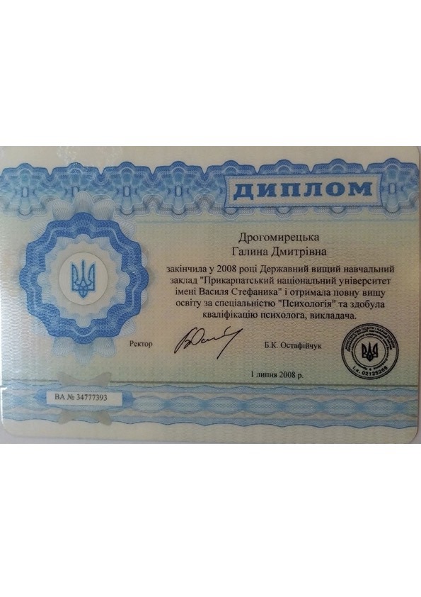 – Прикарпатский национальный университет имени В.Стефаника – Психология, магистр (2003-2008)