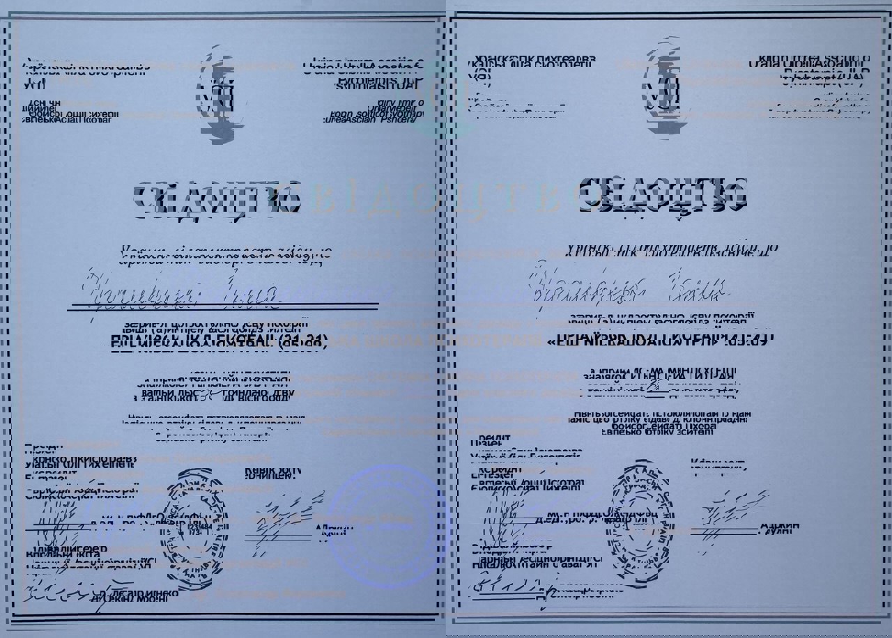 Постоянно повышаю квалификацию через специализированные программы системной семейной психотерапии, психиатрической пропедевтики, кризисной психологии, травмоориентированной КПТ, процессного консультирования и супервидения. Расширенная экспертиза в сфере коучинга, организационного развития, ненасильственной коммуникации и арттерапии формирует комплексный и гибкий подход к поддержке персонала и клиентов.
