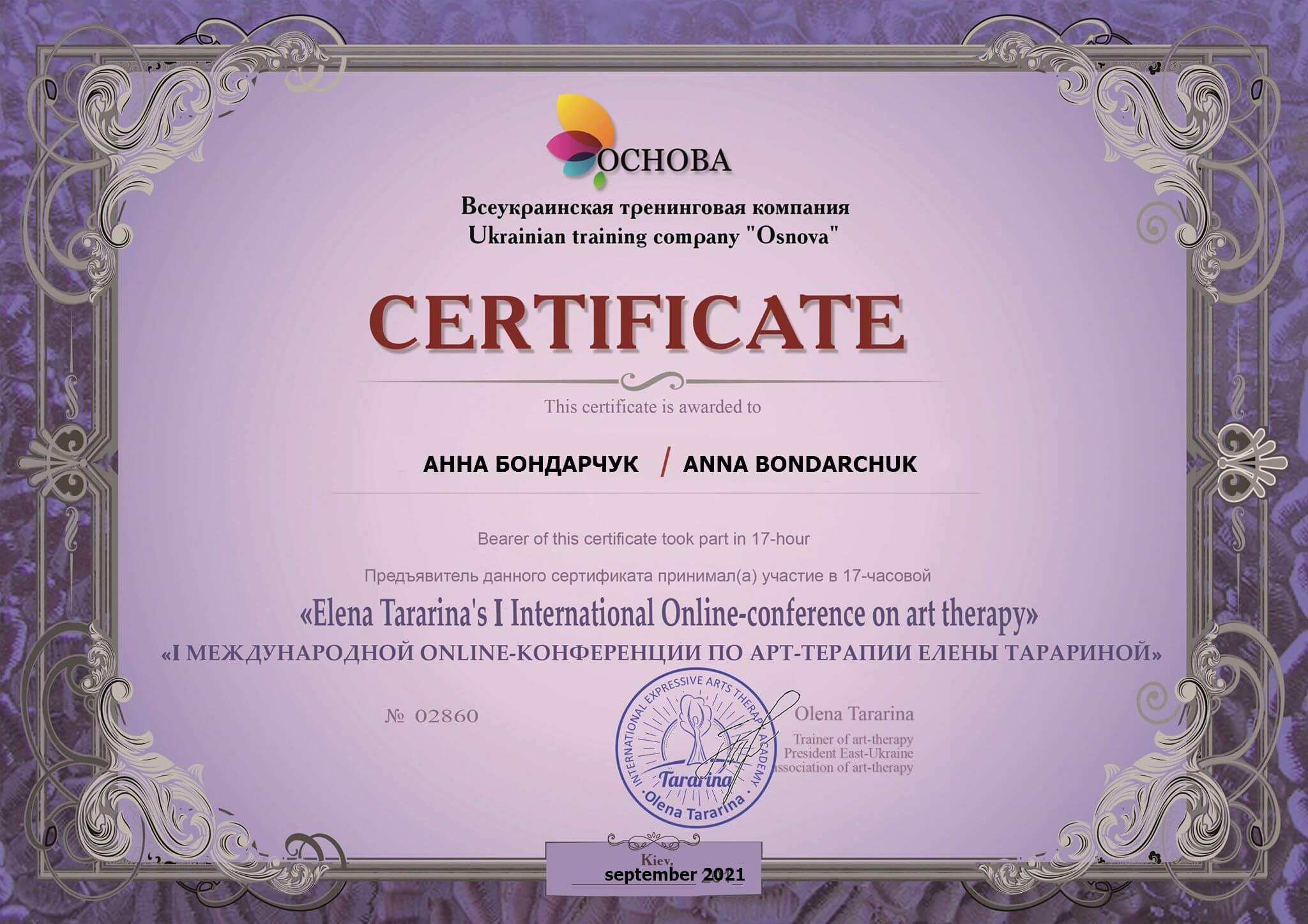 Я открыта к людям, эмпатична, заинтересована в успехе каждого клиенте. Прошла собственную психотерапию и регулярно работаю с супервизором и в интервизионных группах. Постоянно развиваюсь профессионально, получаю новые знания и совершенствую свои навыки.