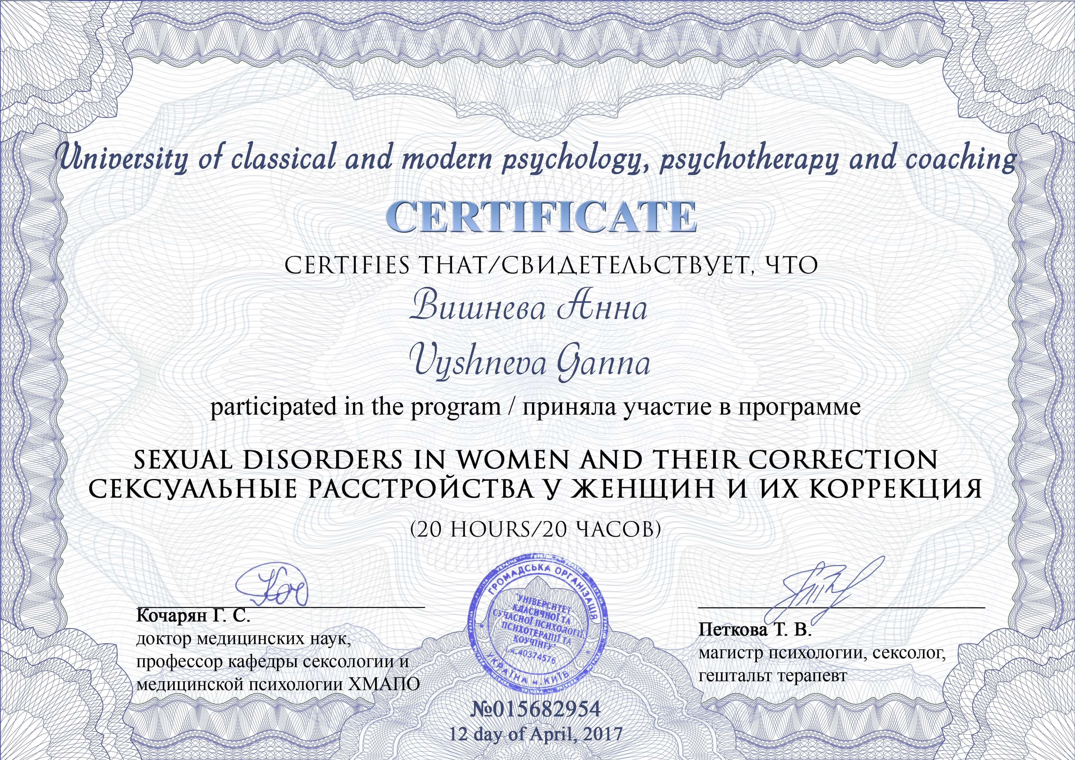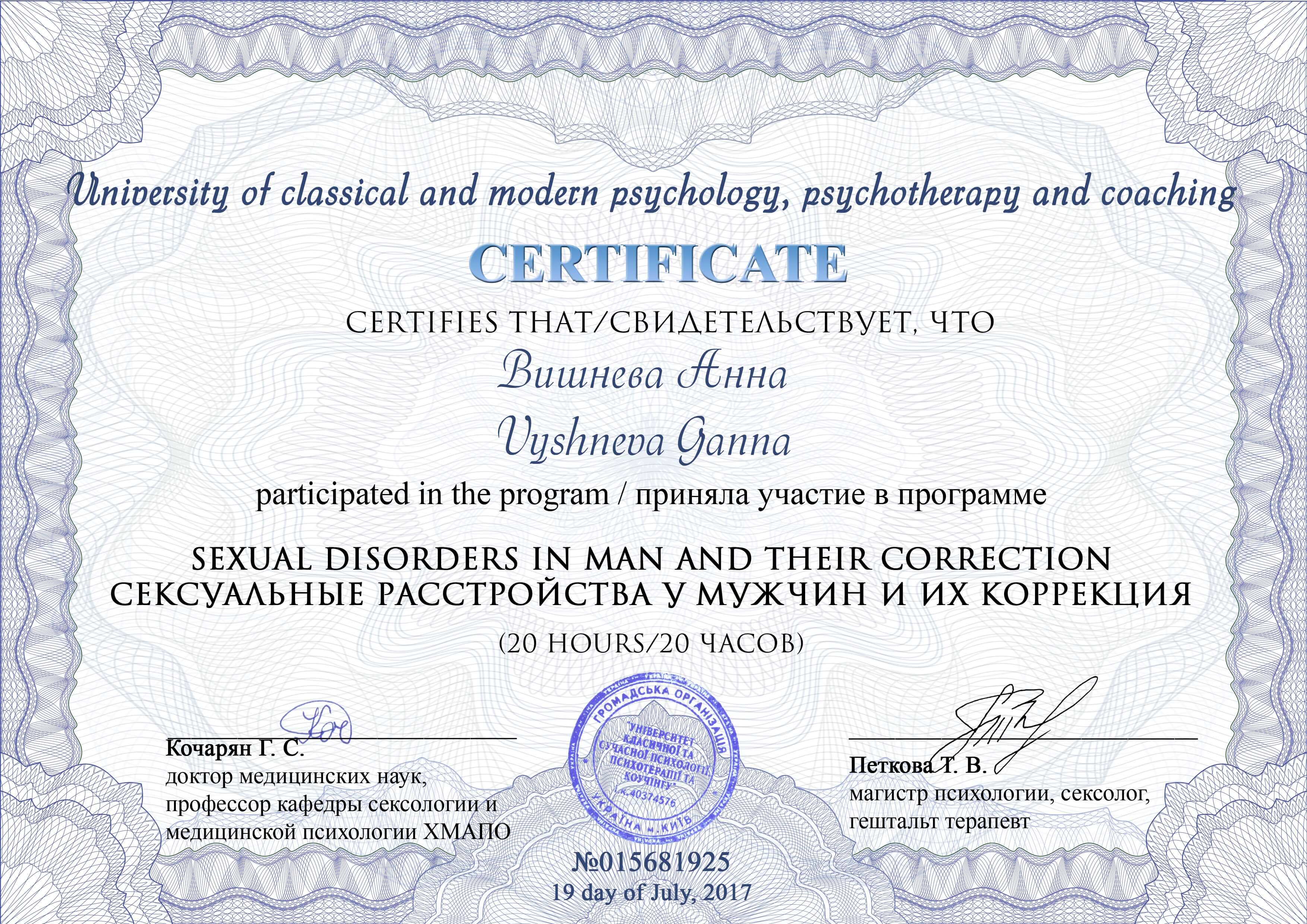 Квалификация: Секс-терапевт