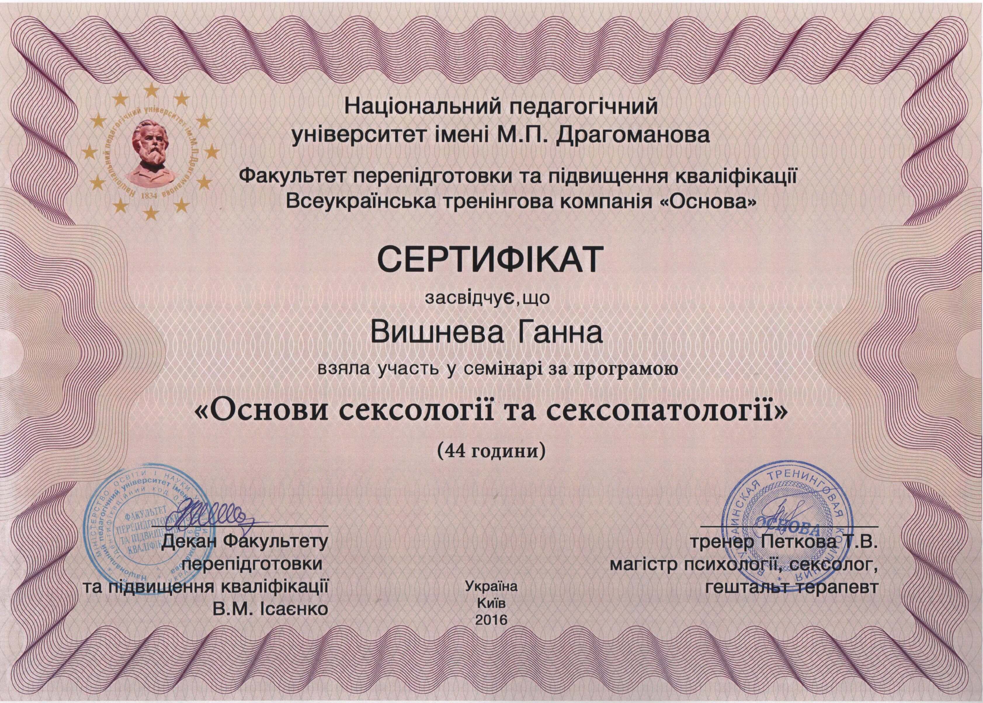 Выдан: Национальный педагогический университет им. М. П. Драгоманова