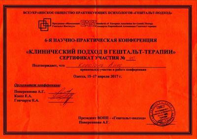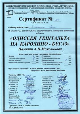 Окончила в 2020 специализацию «Работа с травмой насилия в гештальт-подходе.