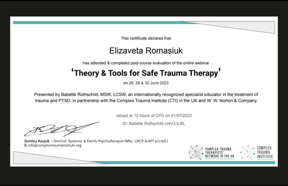 - Complex trauma institute - Теория и инструменты для безопасной травма-терапии (12 часов, 2023 год)