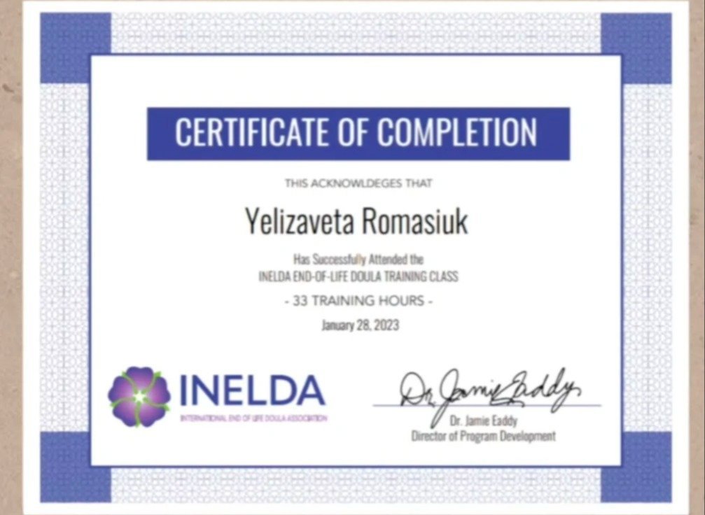 - INELDA - End-of-life doula (33 часа, 2023 год)