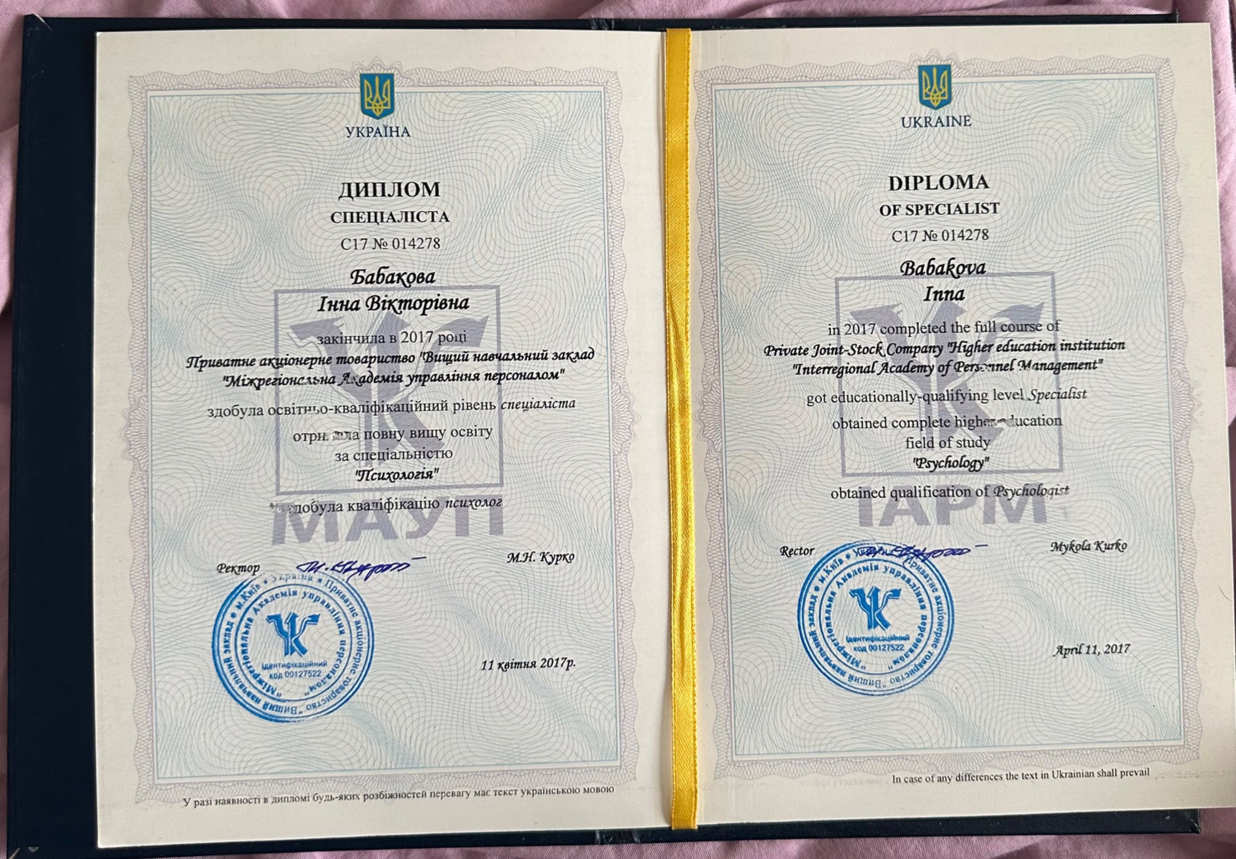 Интересоваться психологией и заниматься саморазвитием я начала с 2005 года, но высшее образование по специальности "Психология" получила в 2015-2017 годах на базе уже имеющихся двух высших.