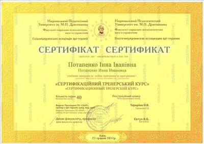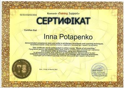 - являюсь членом Восточно - Украинской ассоциации арт- терапии и арт – коуча;