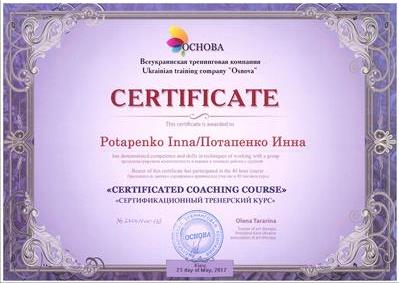 - сертифицированный тренер Восточно -Украинской ассоциации;
