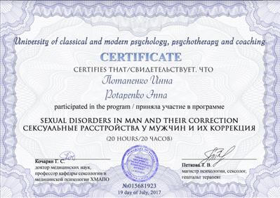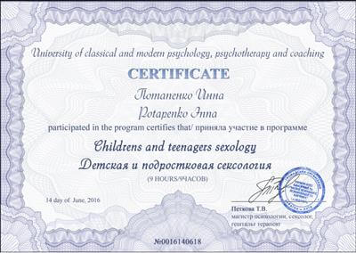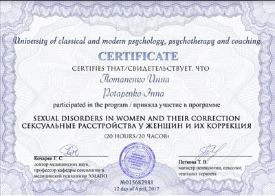 - закончила 6 программ по сексологии у Т. Славиной и Г. Кочеряна;