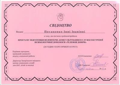 - кризисный психолог, проходила обучение у Ф.Пьюселика;