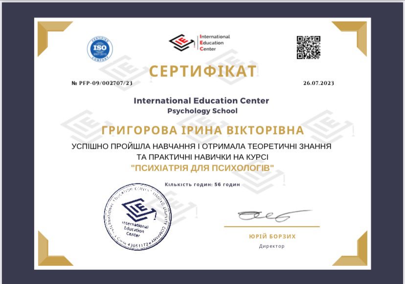 Психиатрия для психологов, International Education Centre, 2023