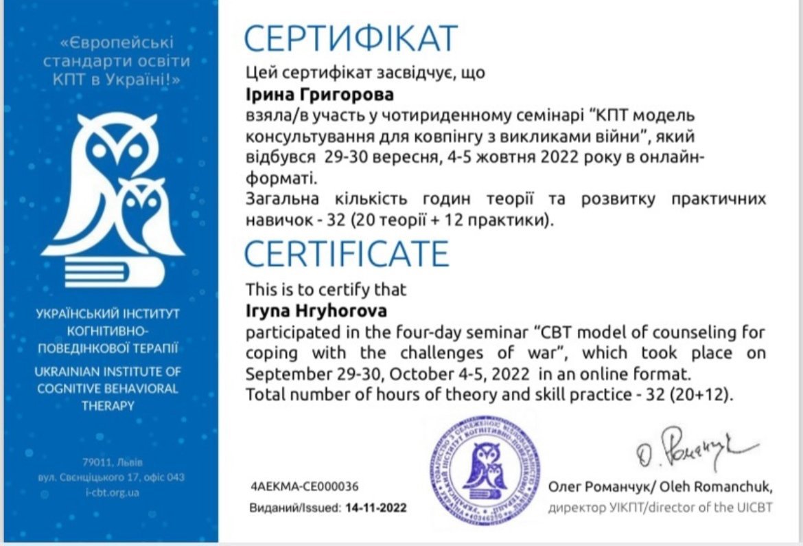 КПТ модель консультирования для коупинга с вызовами войны, УИКПТ, 2022