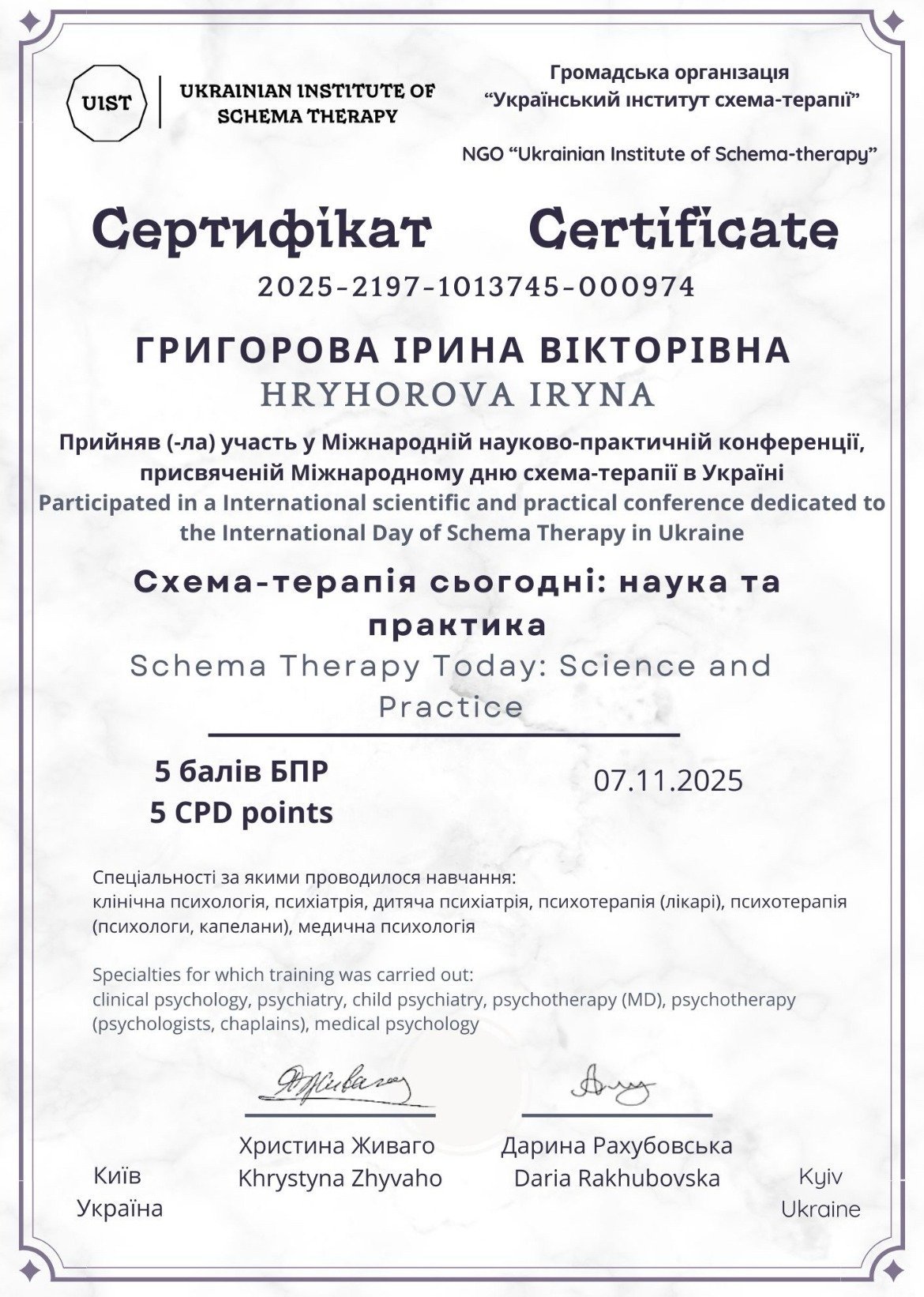 Клиническая психология и психотерапия, НТУ ХПИ, 2025