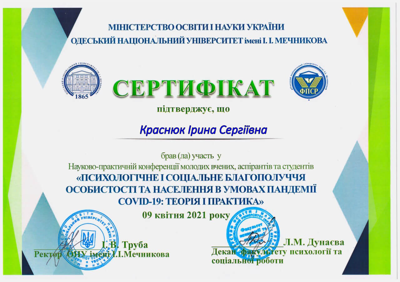 Одесский национальный университет им.И.И.Мечникова «Практическая психология и социальная работа»