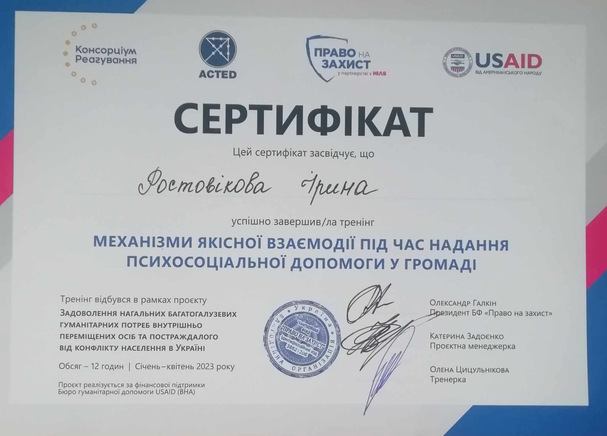 Сертификаты: