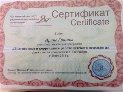 Сертификаты: