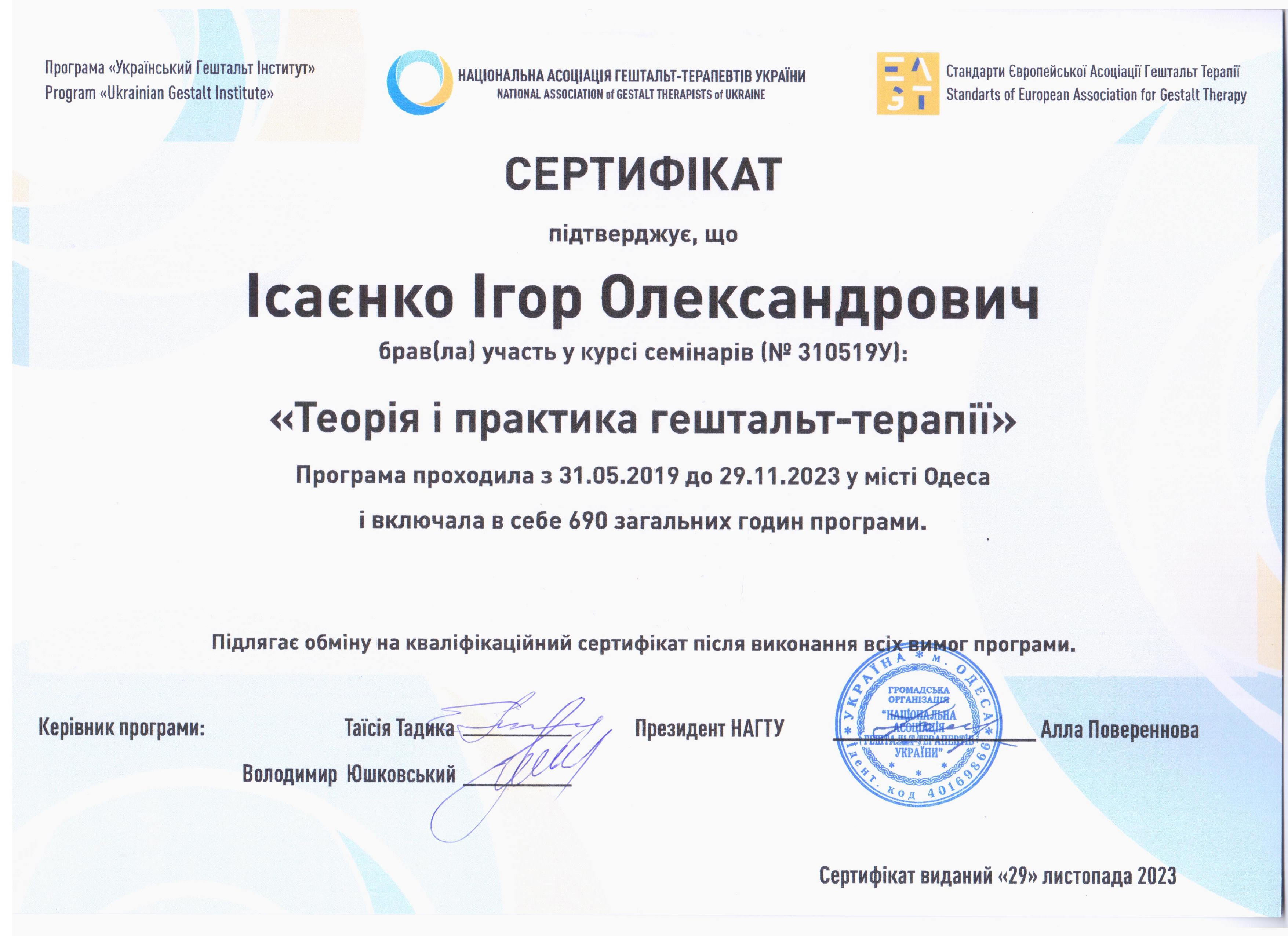 НАГТУ «Украинский гештальт-институт» - гештальт-терапевт - специализация - кризисы и травмы