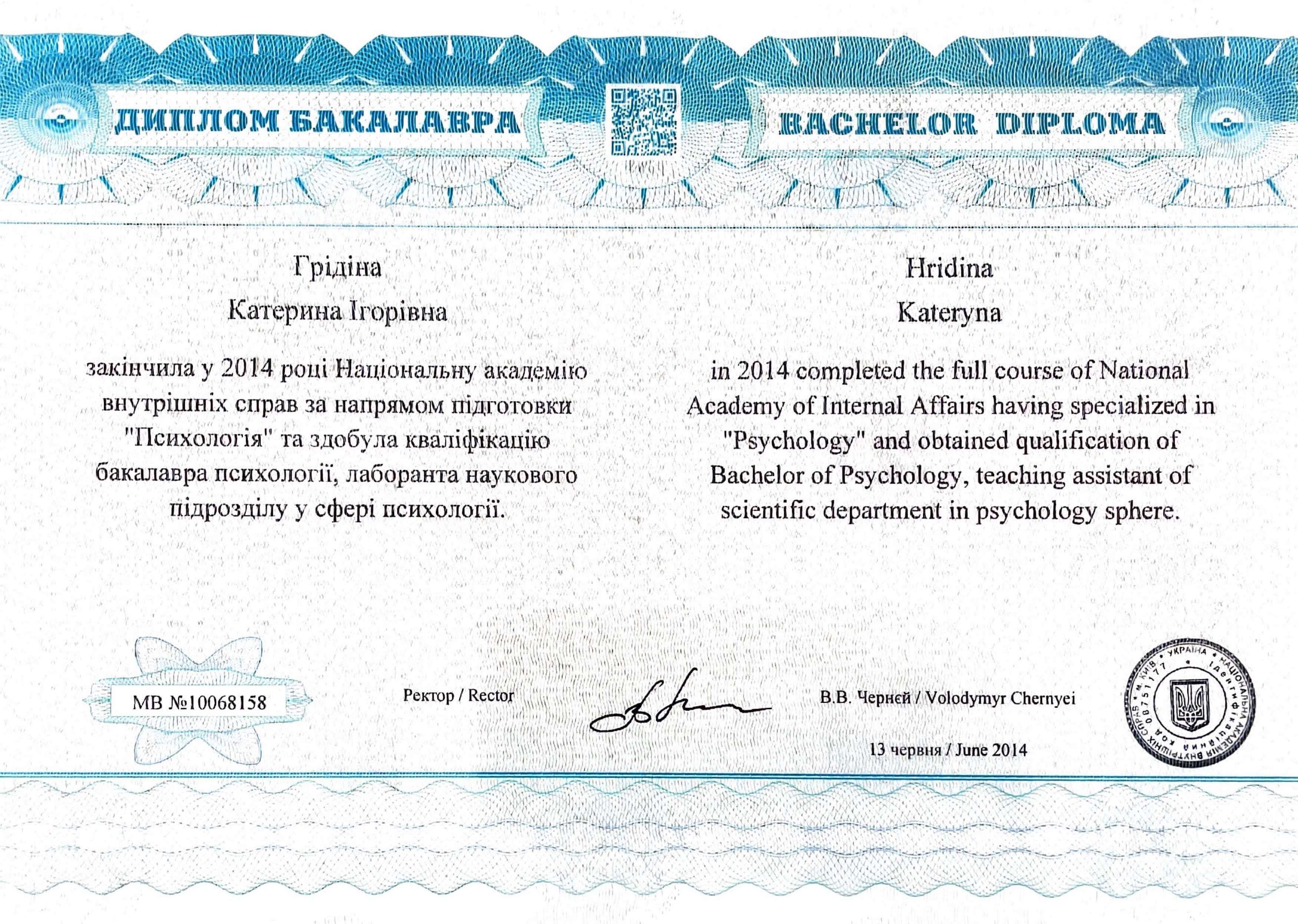 Бакалавр и Магистратура «Психолог», в академии внутренних дел.