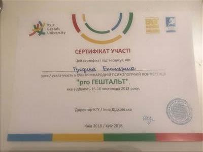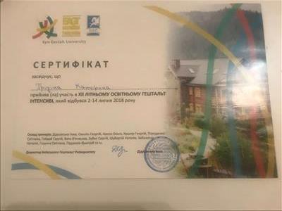 Закончила 2е ступень в Киевском гештальт университете.
