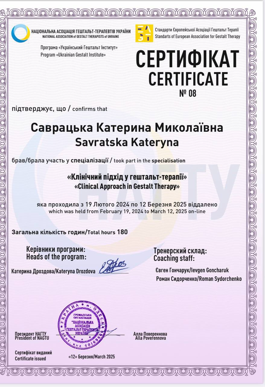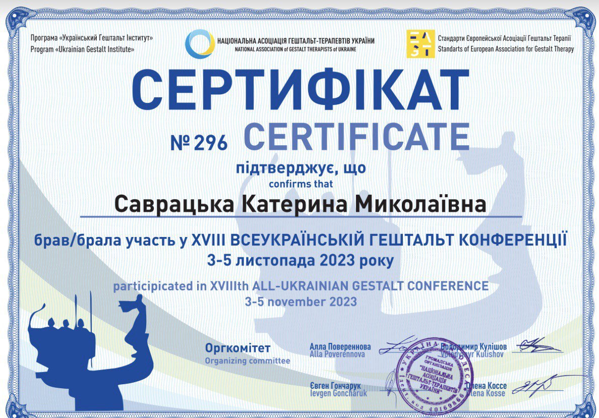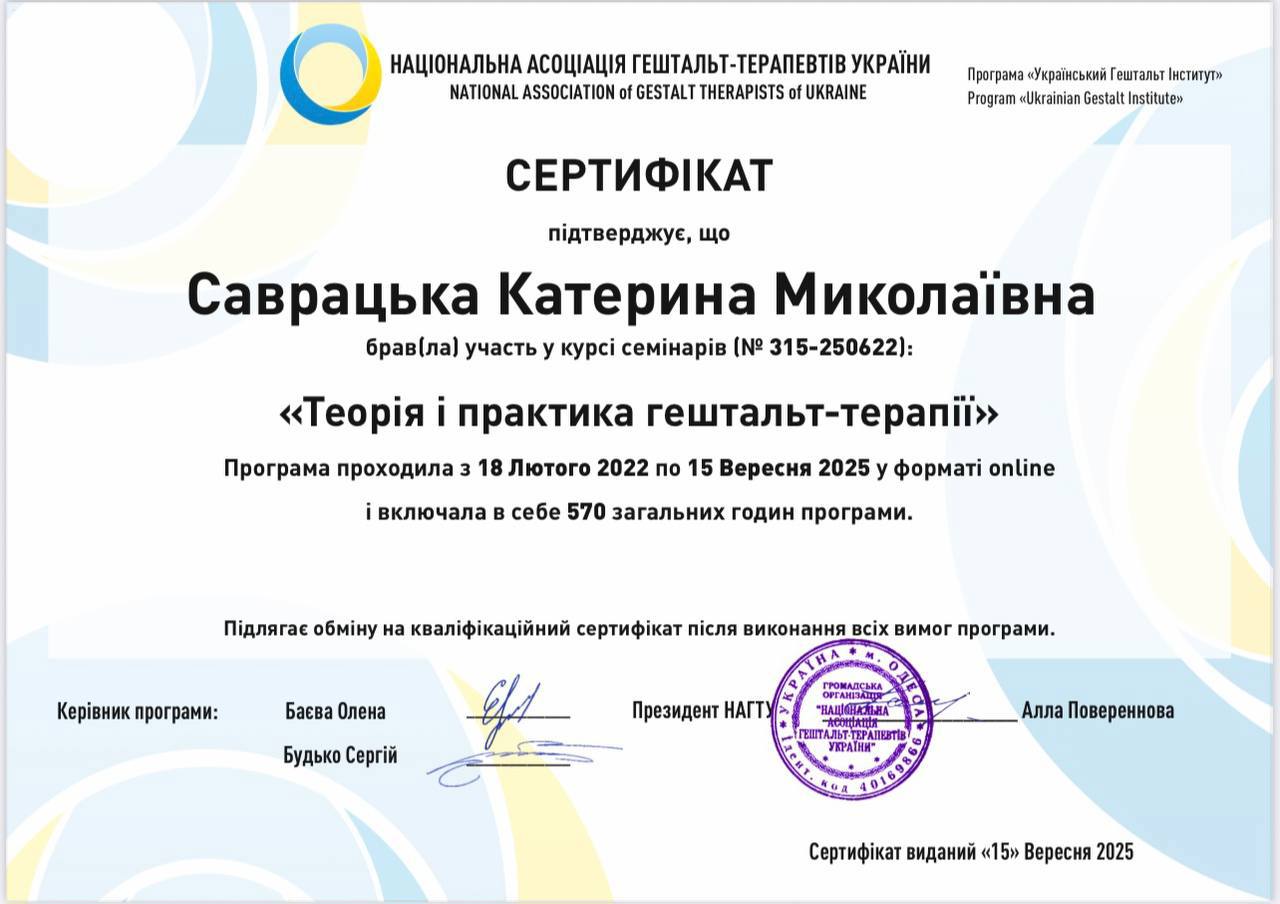 Имею степень магистра психологии Национального педагогического университета имени М. П. Драгоманова.