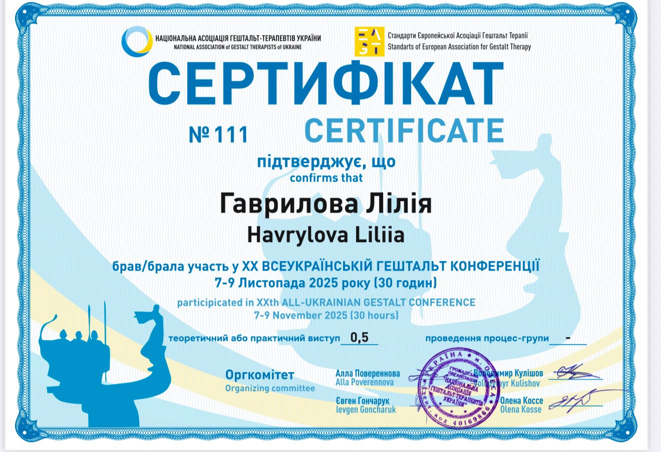 Южноукраинский Национальный Педагогический Университет им.К.Д.Ушинского - Психолог, Национальная Ассоциация Гештальт-Терапевтов Украины, УСП,