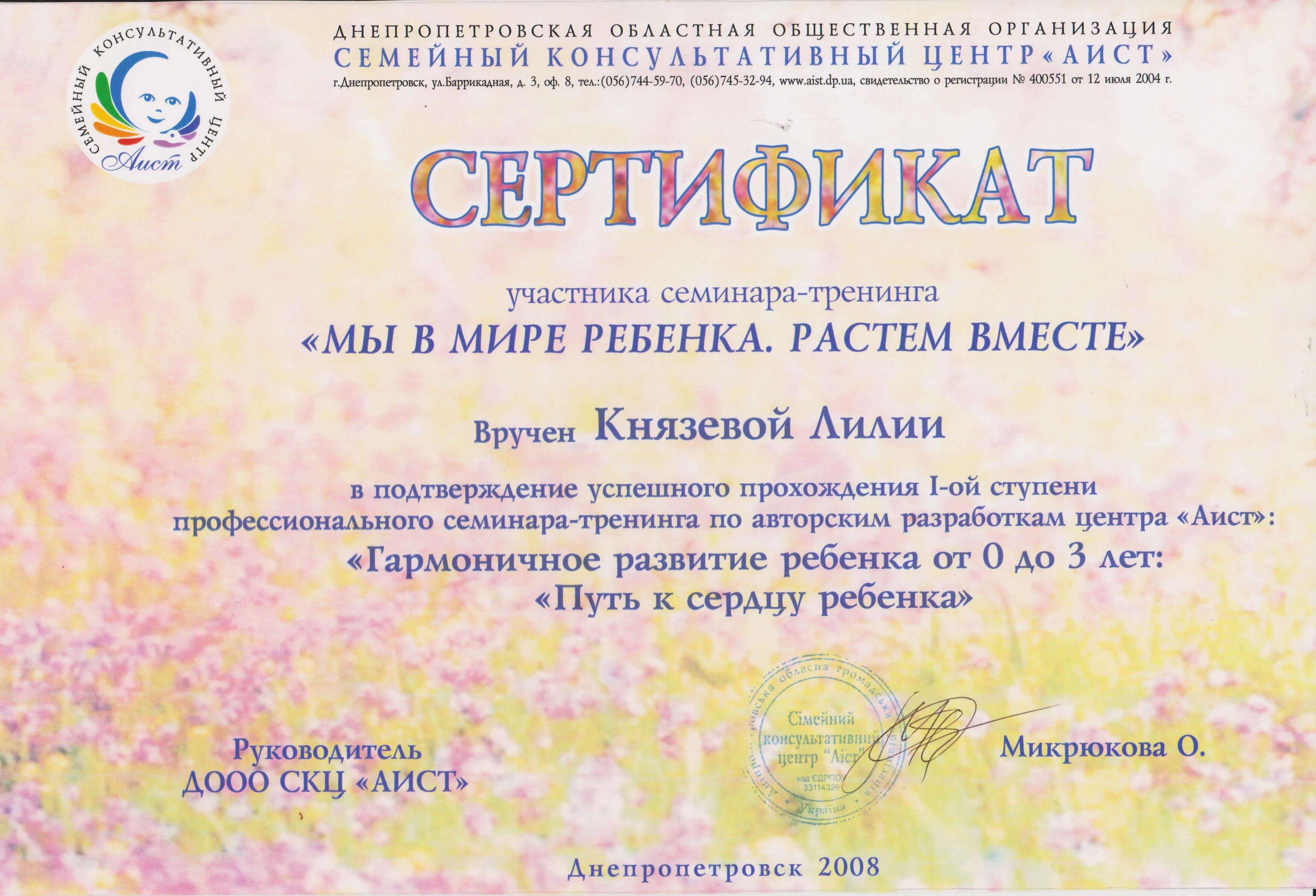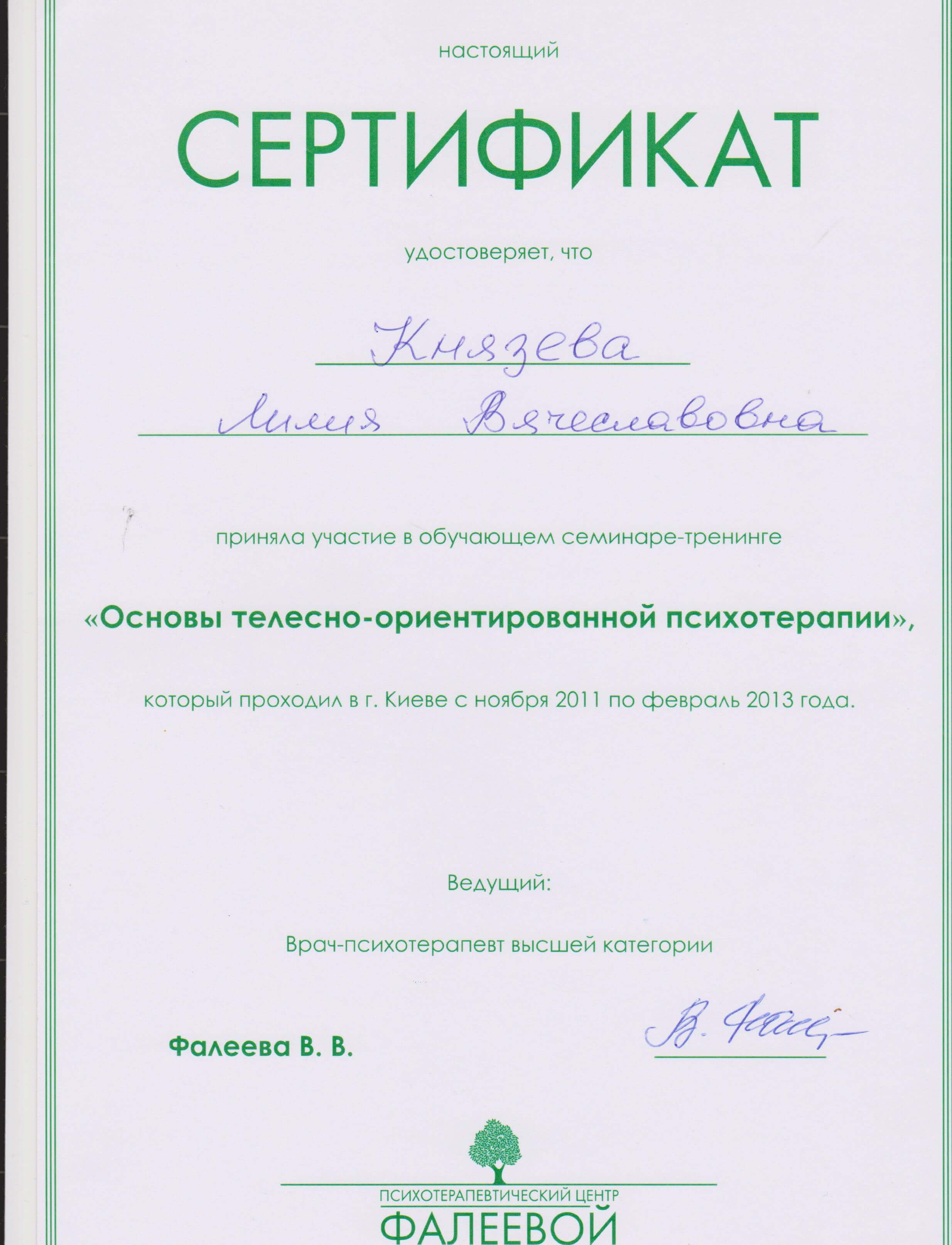 Сертификаты: