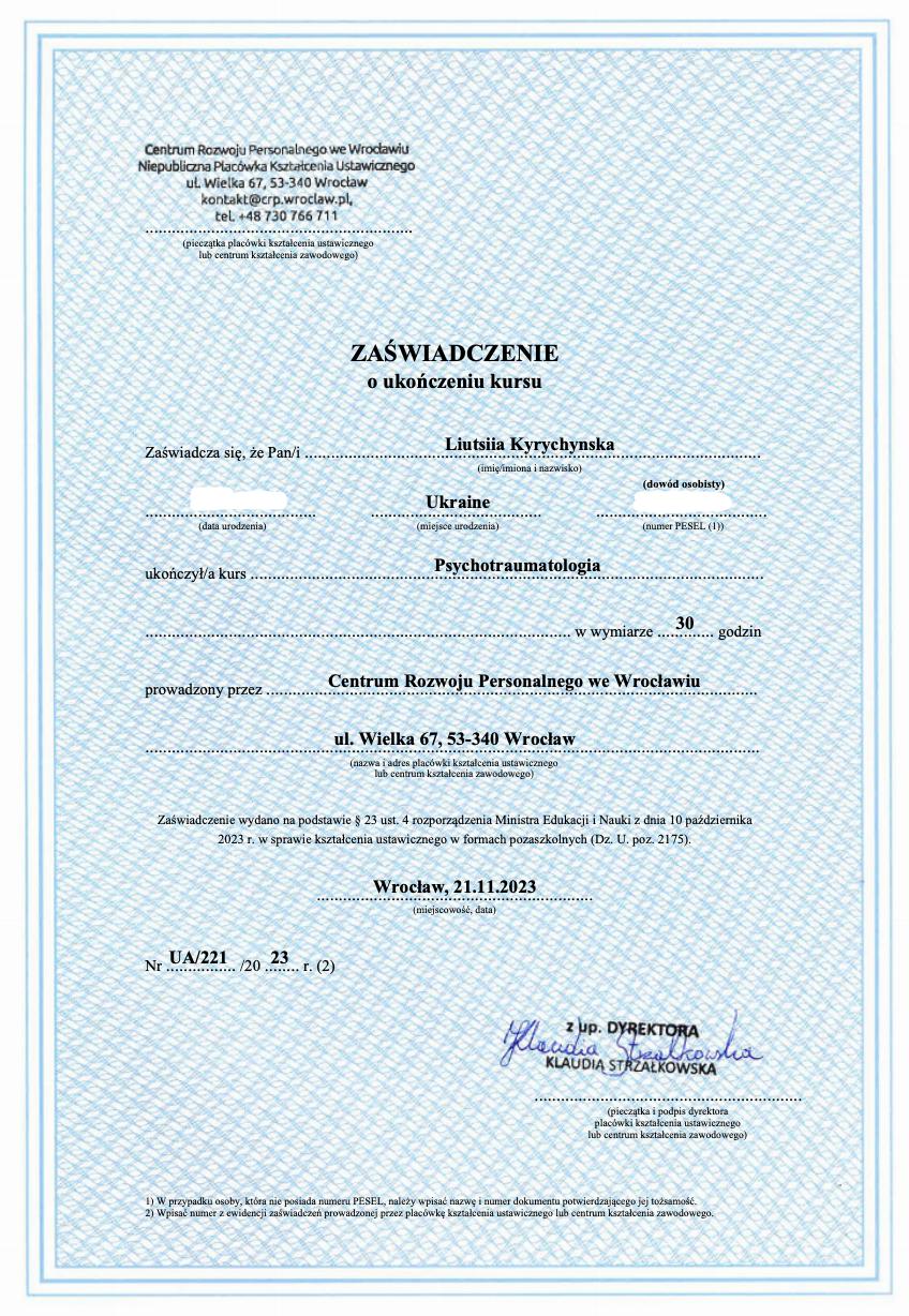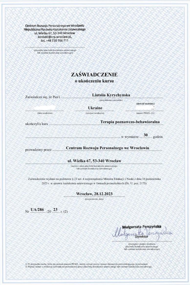 • Centrum Rozwoju Personalnego (Wrocław) – курс по КПТ;