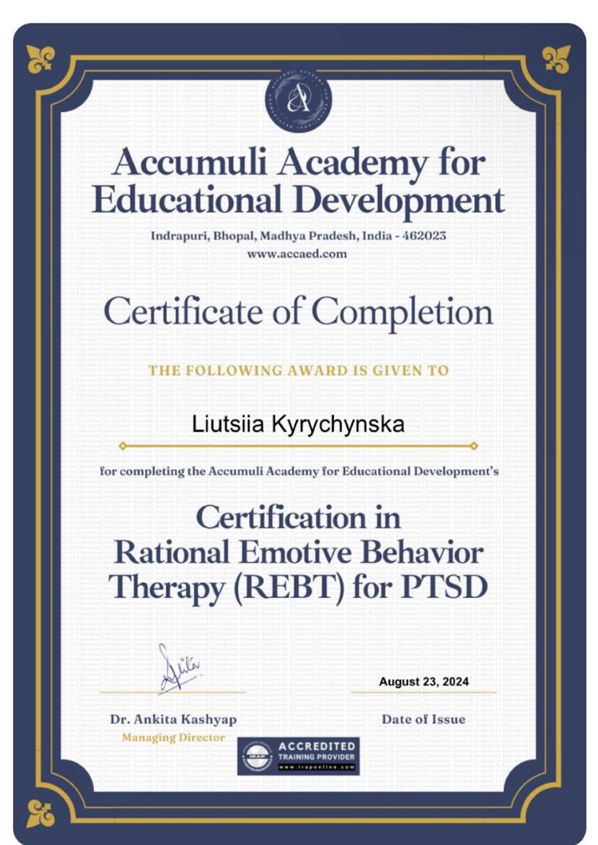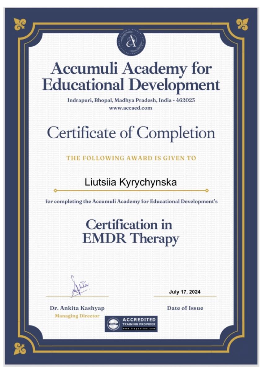 • Accumuli Academy – EMDR-терапия, РЭПТ при ПТСР;
