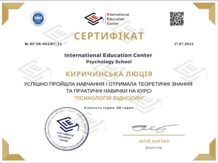 • International Education Center – «Психология отношений», «Сексология (базовый и продвинутый уровни)».