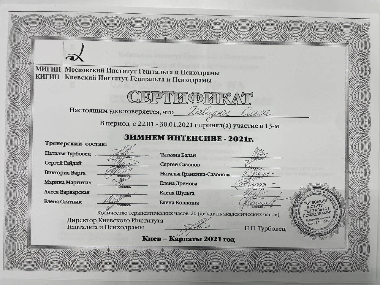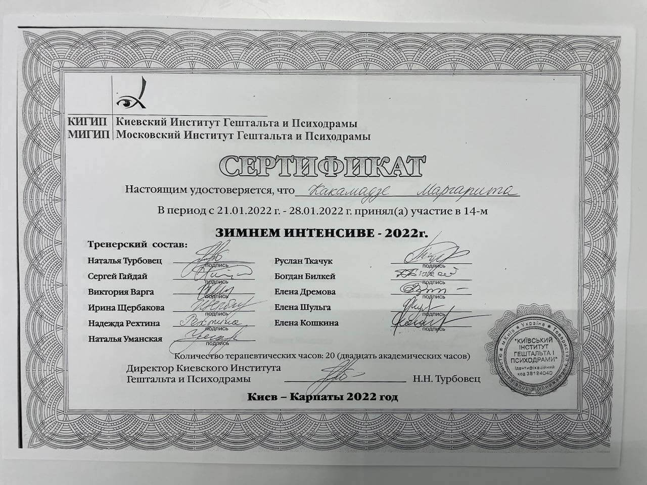Специализация: Гештальт – коуч. КИГИП 2021г.