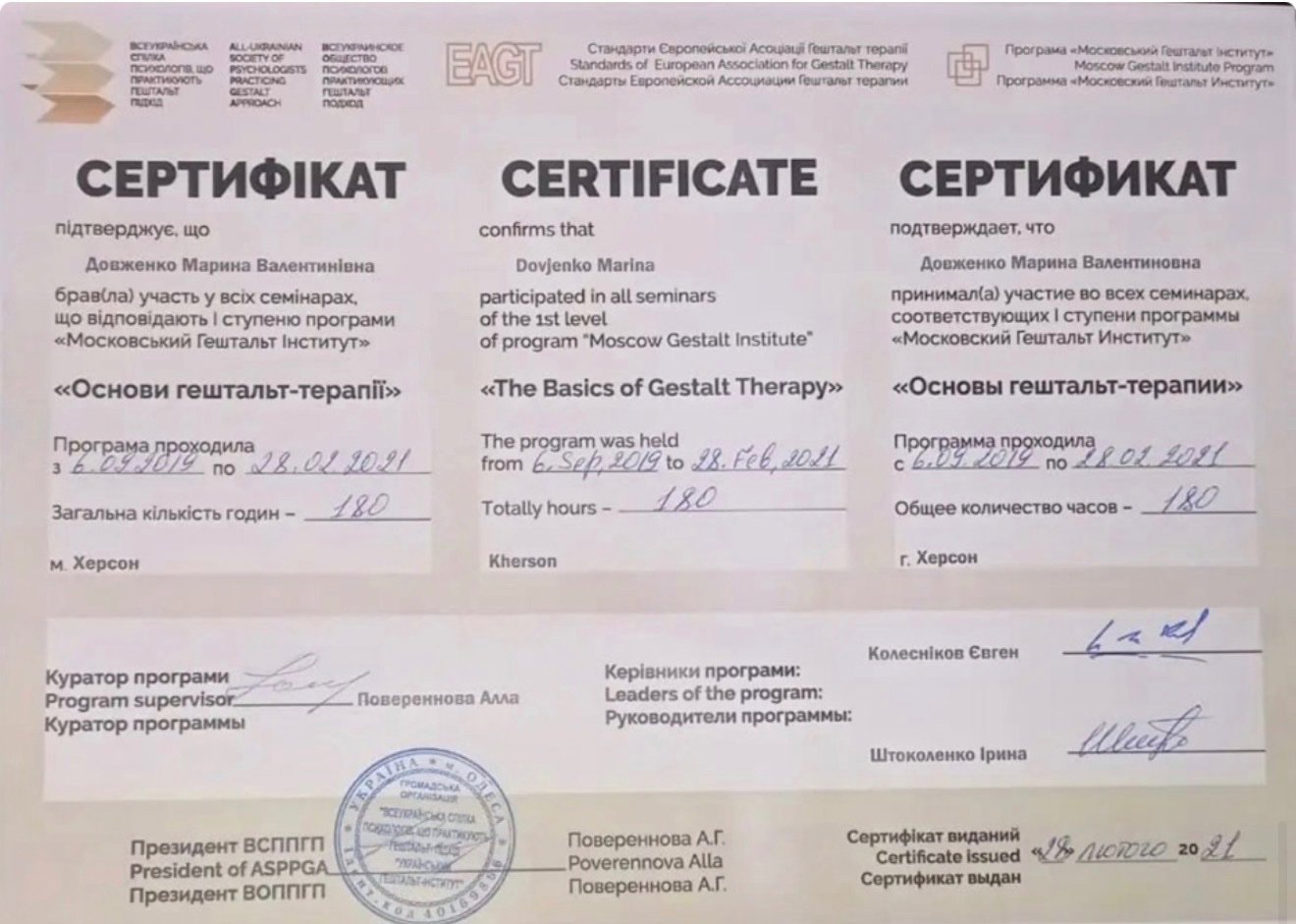 Херсонский государственный университет Гештальт терапия 2 ступени, Метафорические карты, песочная терапия, сказко-терапия, специализация по горю и потере
