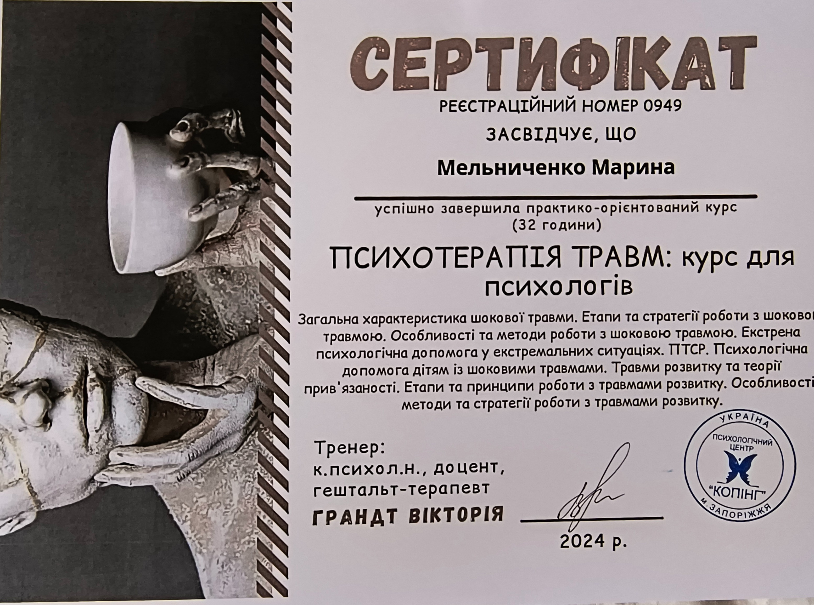 - 2024г «Психотерапия психотравм» №0J6AX9M1