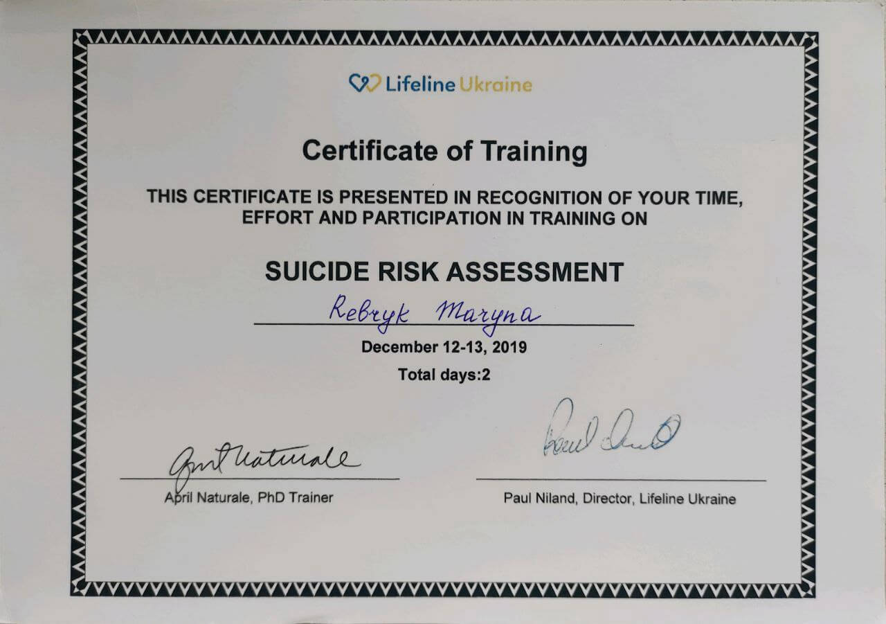 - тренинг «Оценка риска суицида» (Эйприл Натурель, США)
