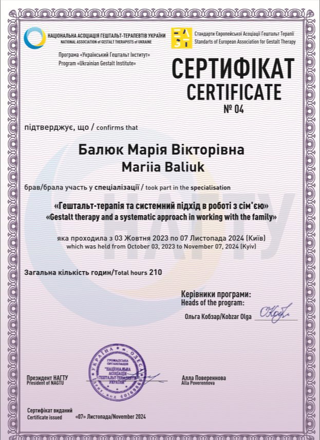 Специализация: Гештальт-терапия и системный подход в работе с семьей (210 часов)