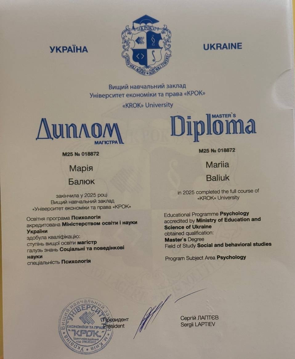 Как человек я энергичный, добрый, живой, неравнодушный, ответственный. Как специалист я внимательная, бережная, честная, постоянно повышаю квалификацию и имею регулярное супервидение.