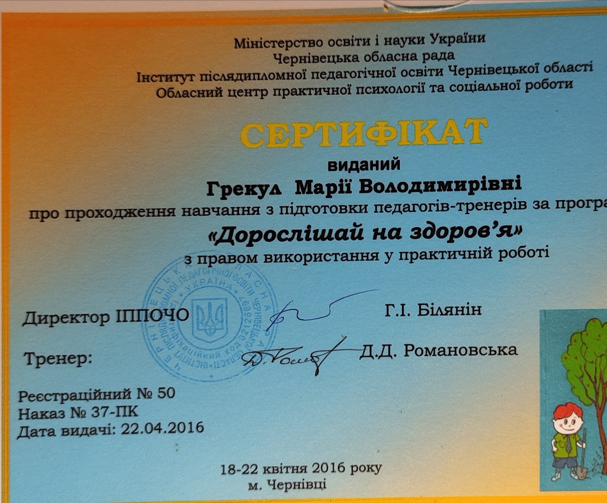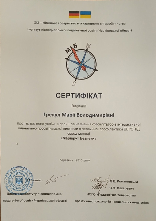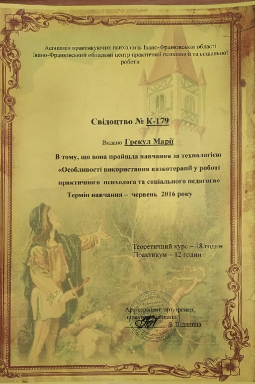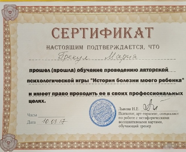 в 2016 году окончила курсы повышения квалификации школьных психологов.