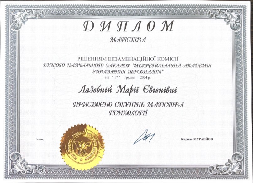 * Гештальт-терапевт в обучении (Украинский Институт Современной Гештальт Терапии ІІ степень)
