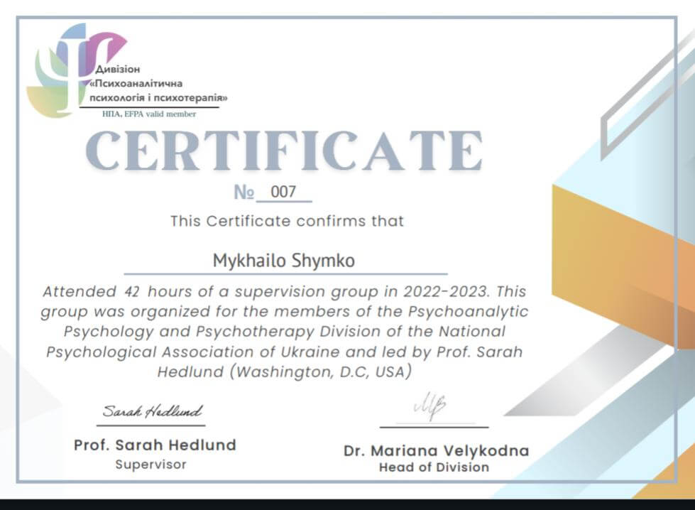 Постоянное участие в супервизионной группе на протяжении 7ми лет.