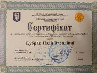 -Проходження курсу "Арт-терапія як засіб соціально-психологічної корекційної роботи" 2017 р. (30 год)