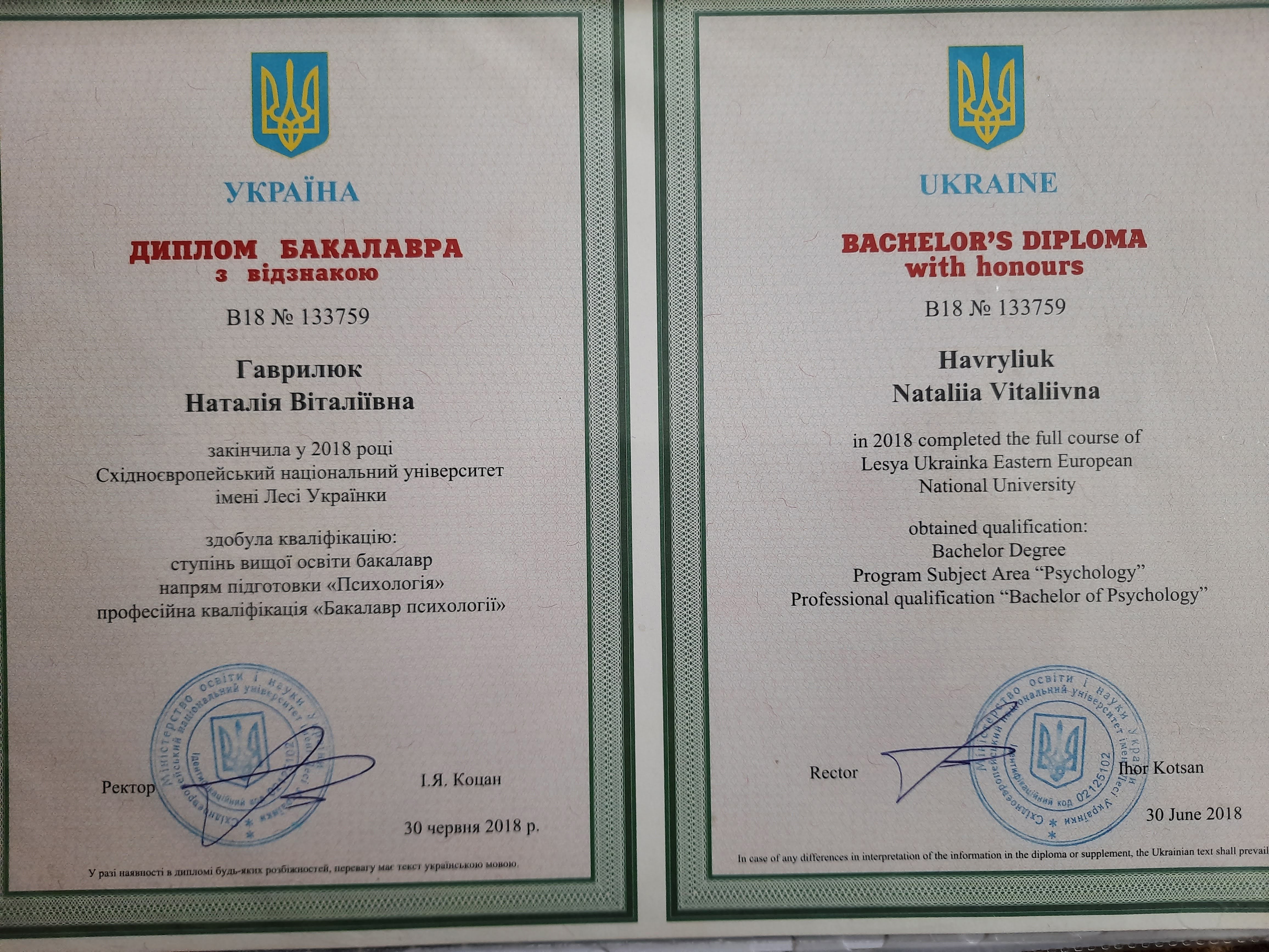 • Бакалавр психологии (2014–2018)