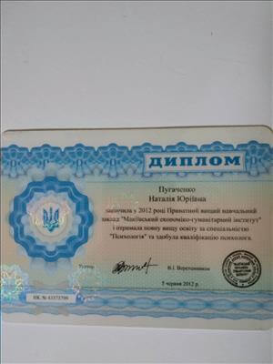 Высшее образование по специальности "Психология" - МЭГИ 2012г.