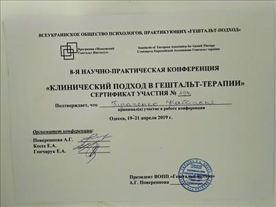 В работе я пользуюсь методом гештальта терапия, техники и упражнения КПТ, артметоды, метафорические ассоциативные карточки. Но основное - это терапевтический разговор между терапевтом и клиентом, как пространство для