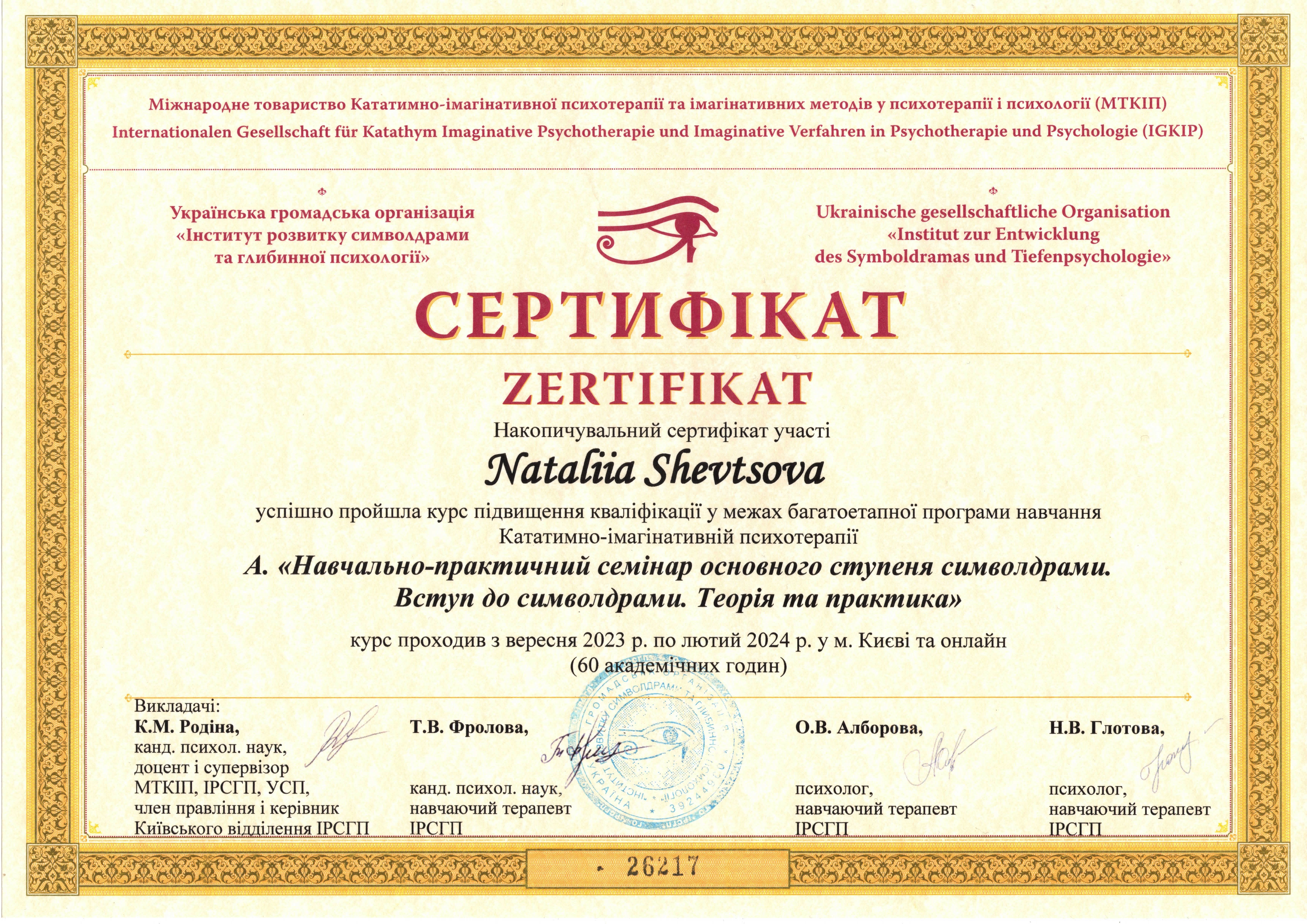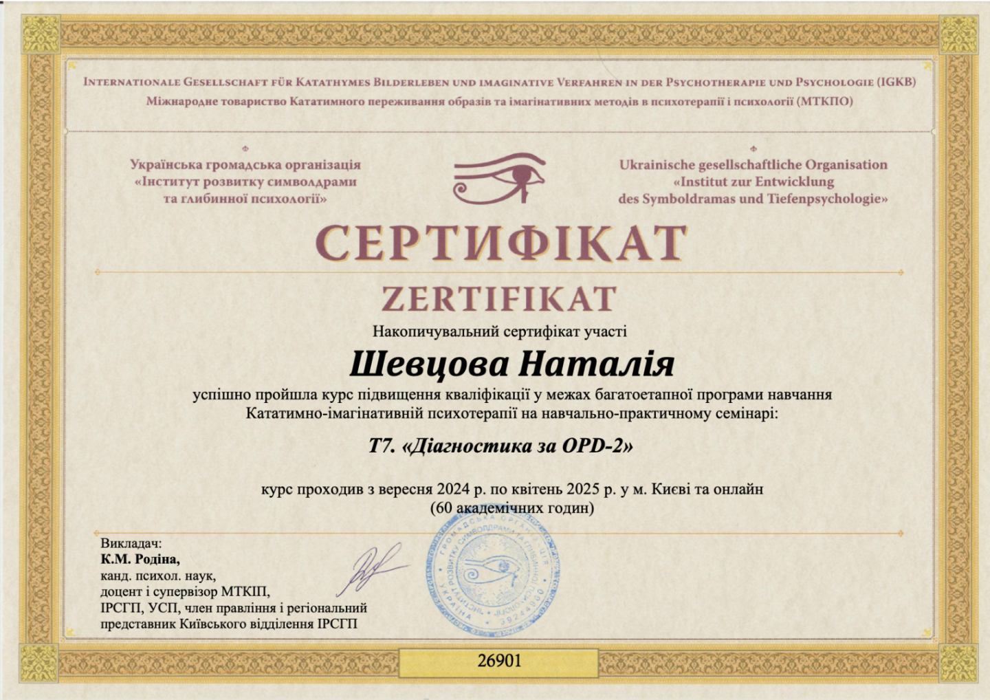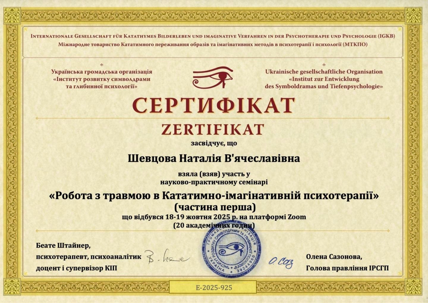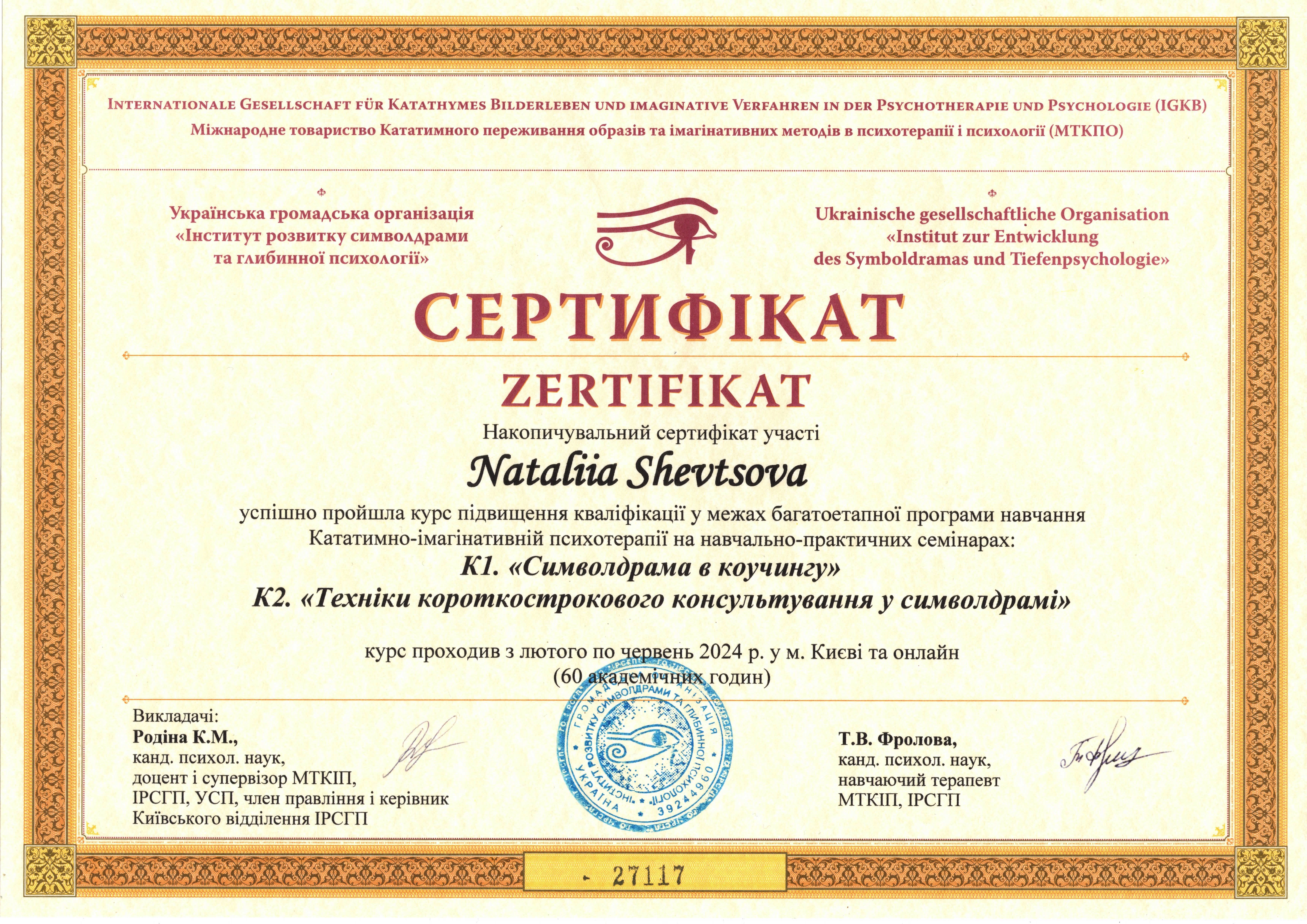 Окончила: -Днепровский гуманитарный университет по специальности "Практический психолог"