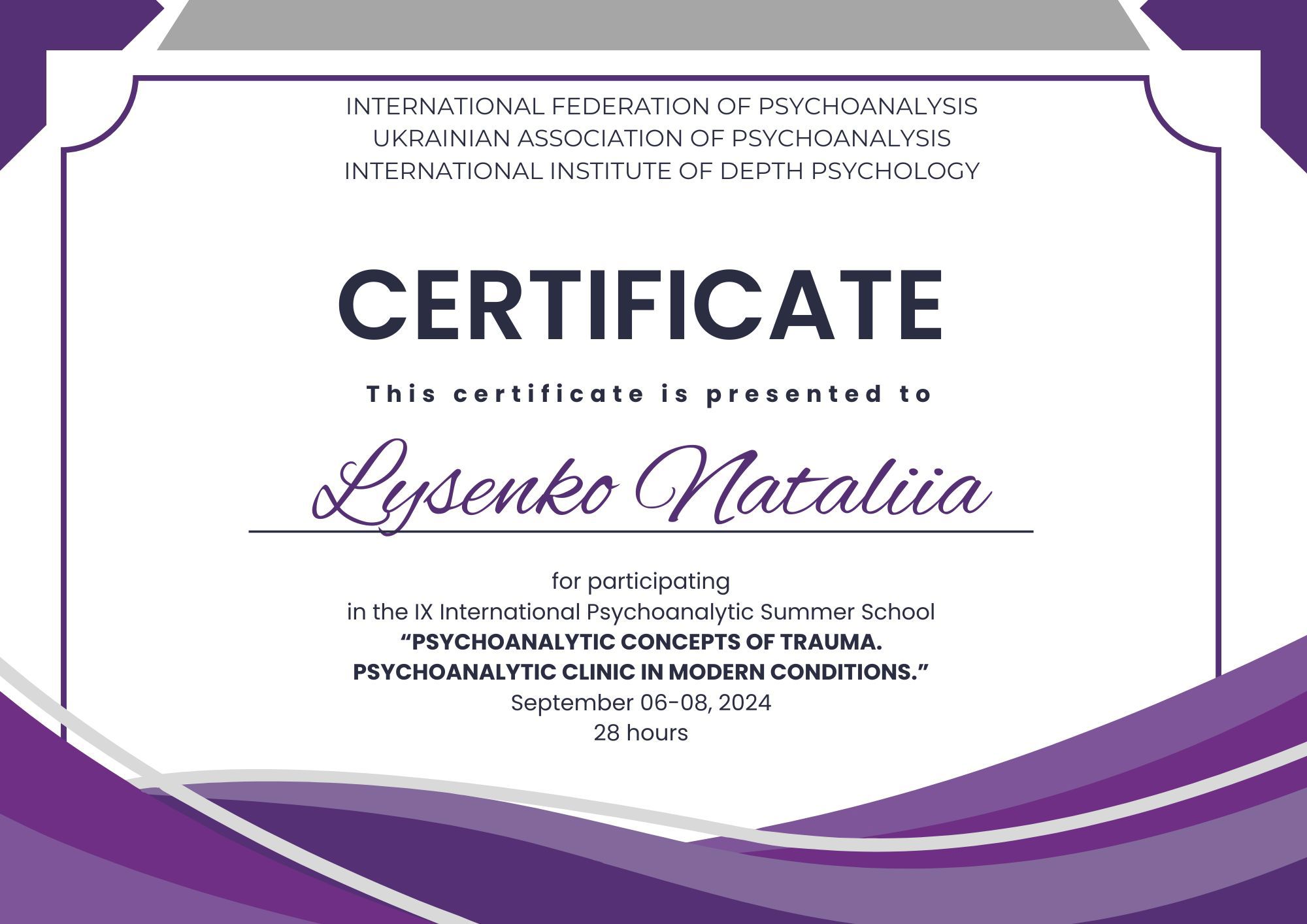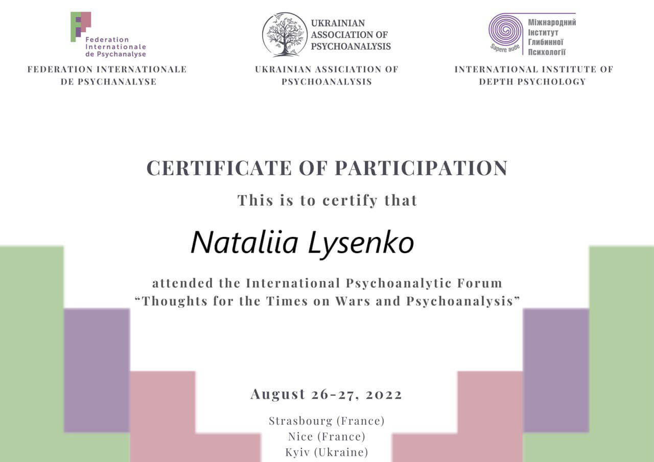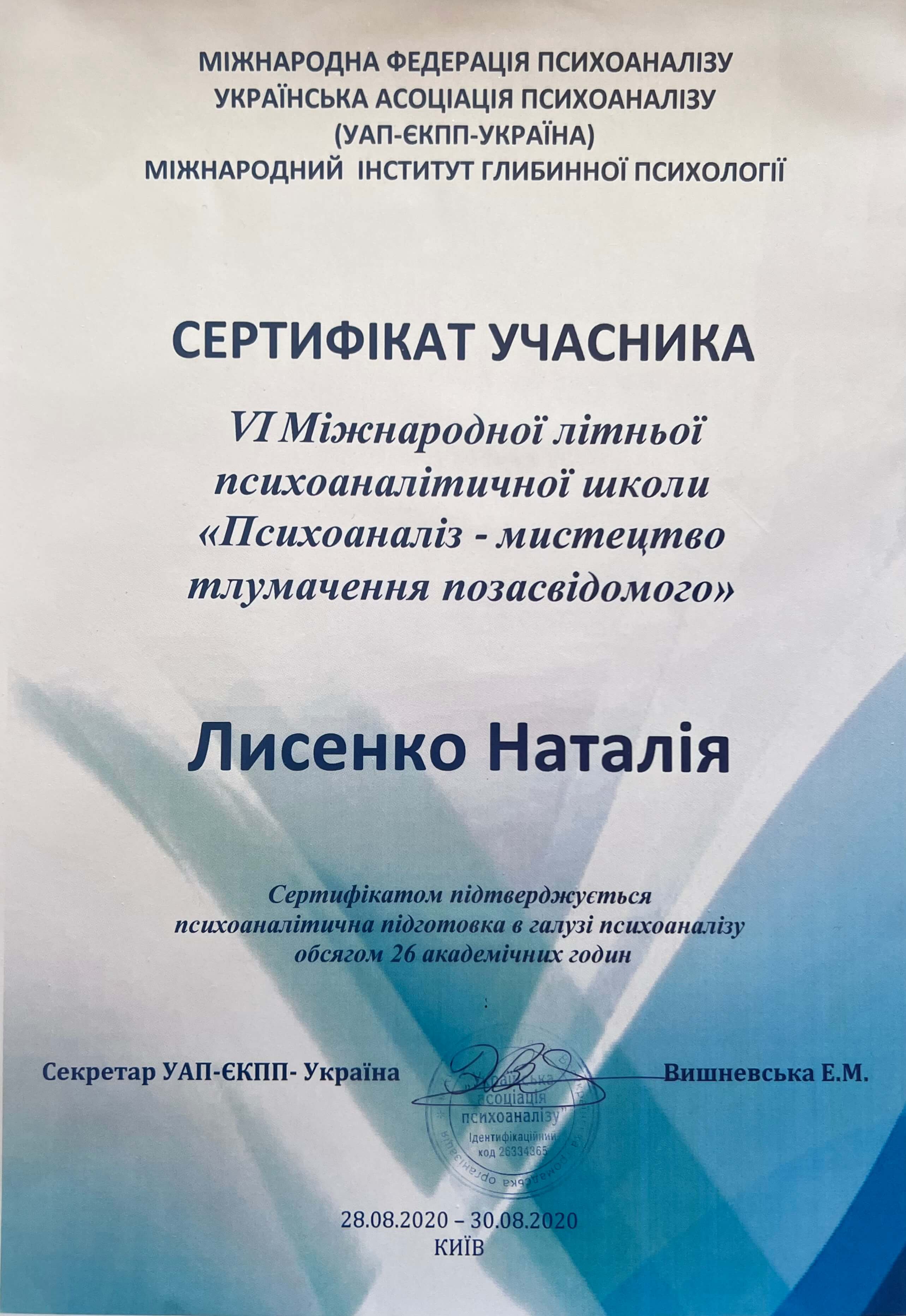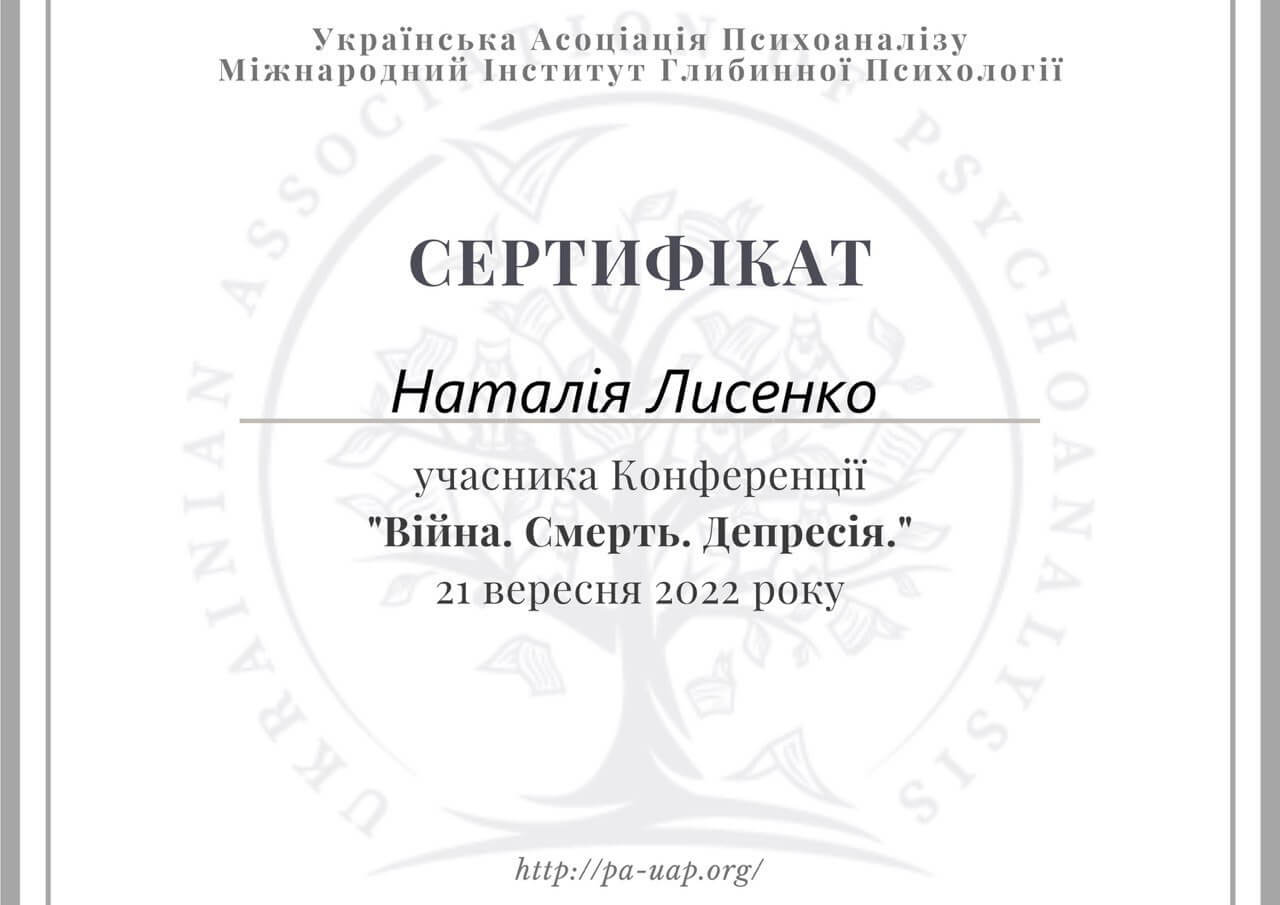 Член Украинской Ассоциации Психоанализа (УАП-ЕКПП)