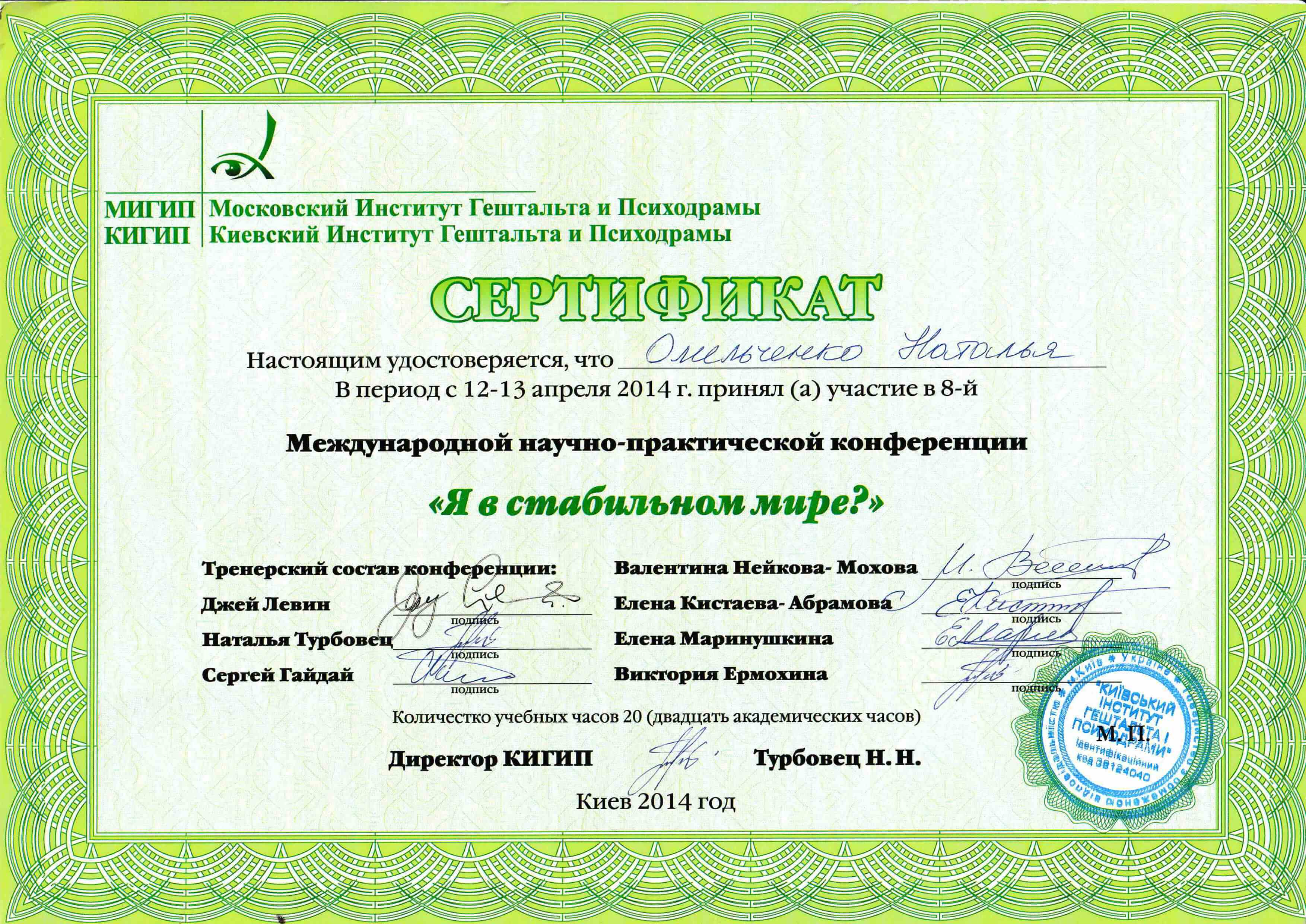 -2007-2011 Московский институт гештальта и психодрамы-программа подготовки гештальт-терапевтов-Сертифицированный гештальт-терапевт